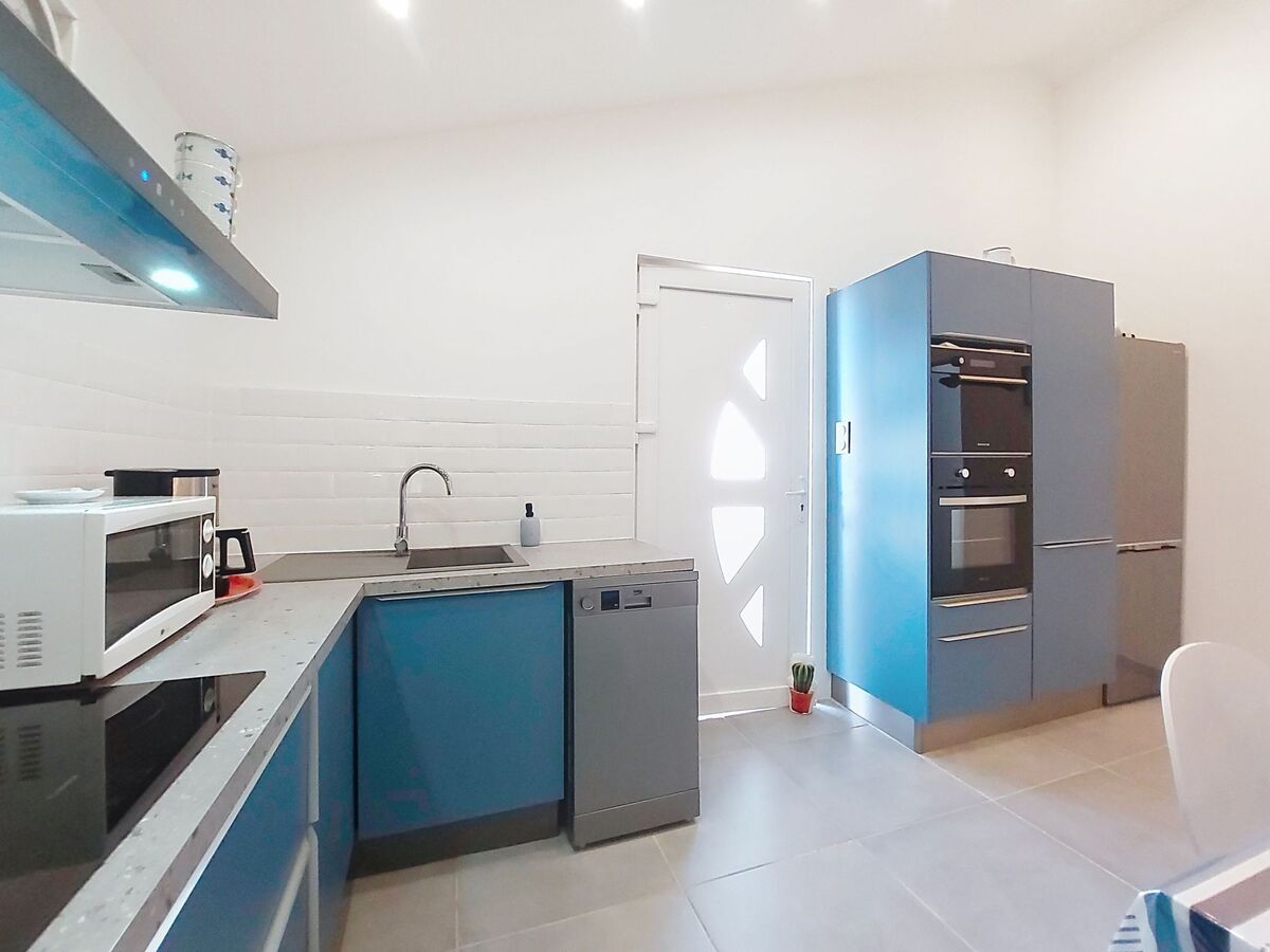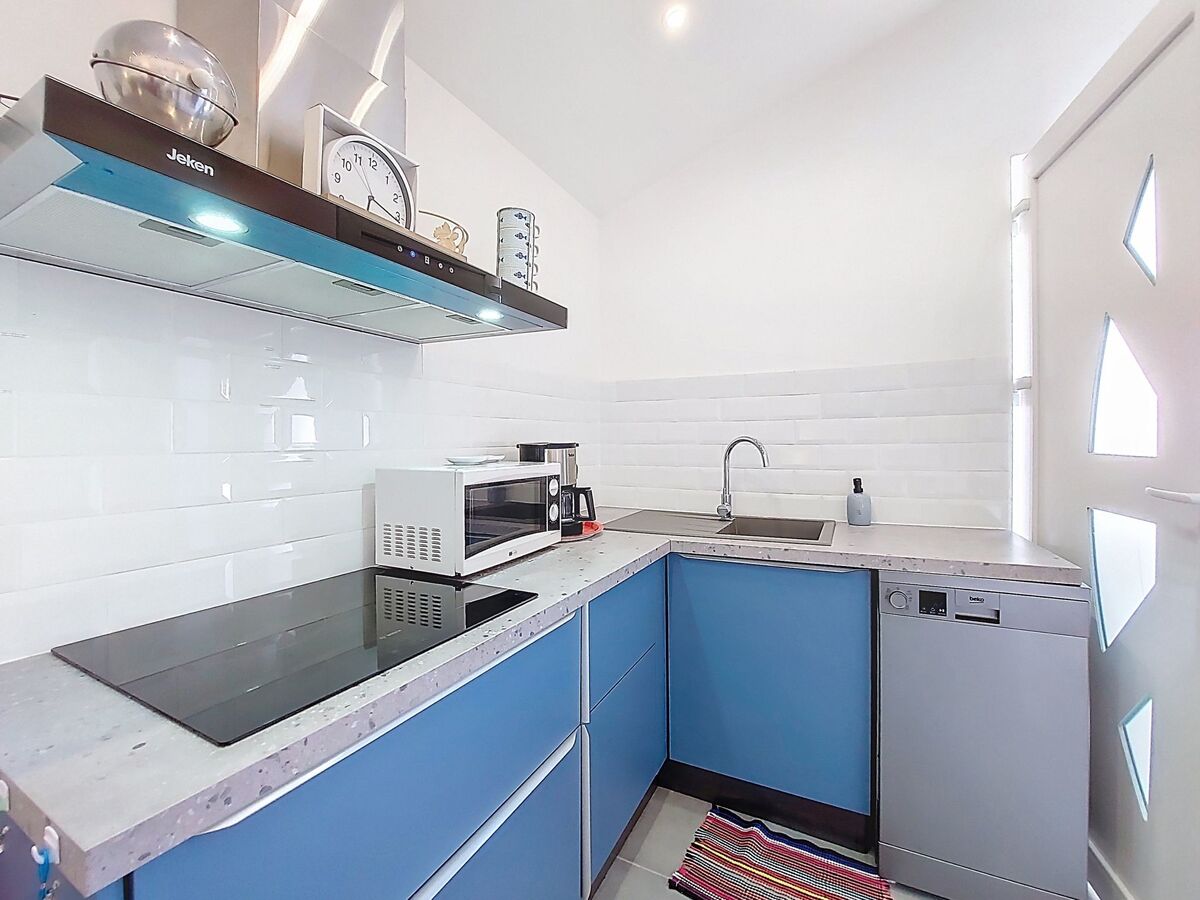 Cuisine ouverte (four, lave-vaisselle, 4 plaques vitrocéramiques, grille-pain, bouilloire électrique, micro-ondes, congélateur, cafetière électrique, four à vapeur).