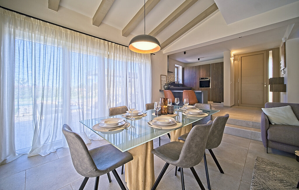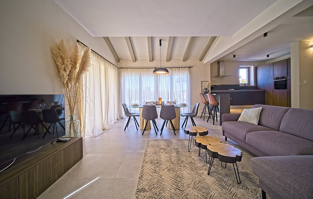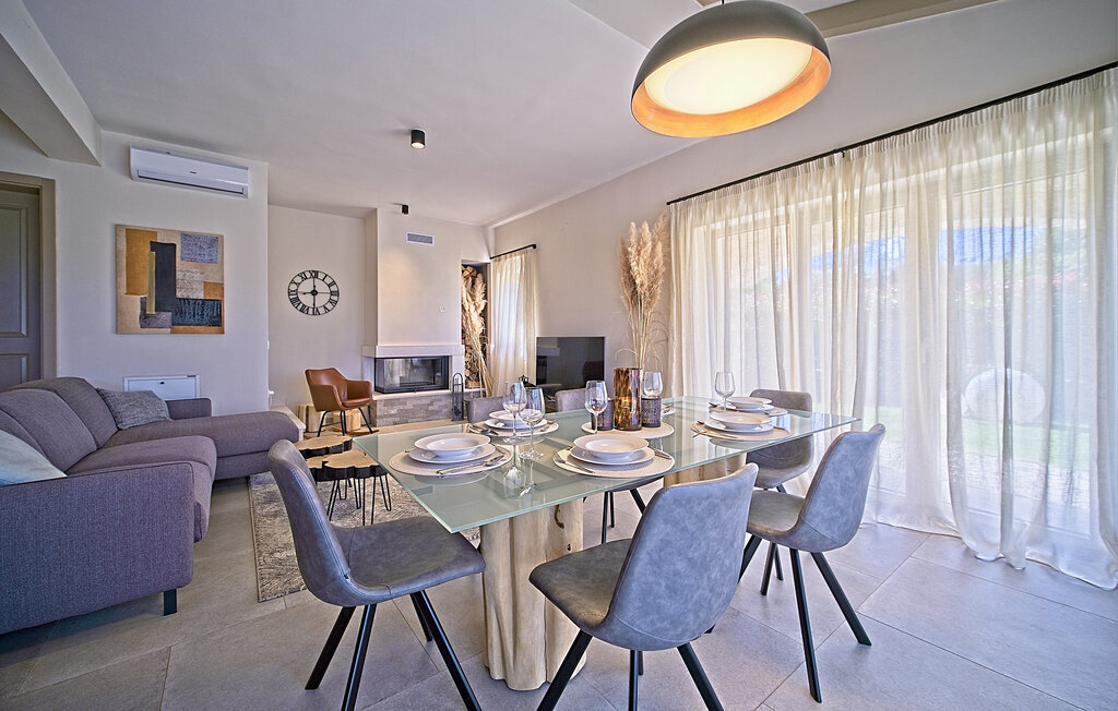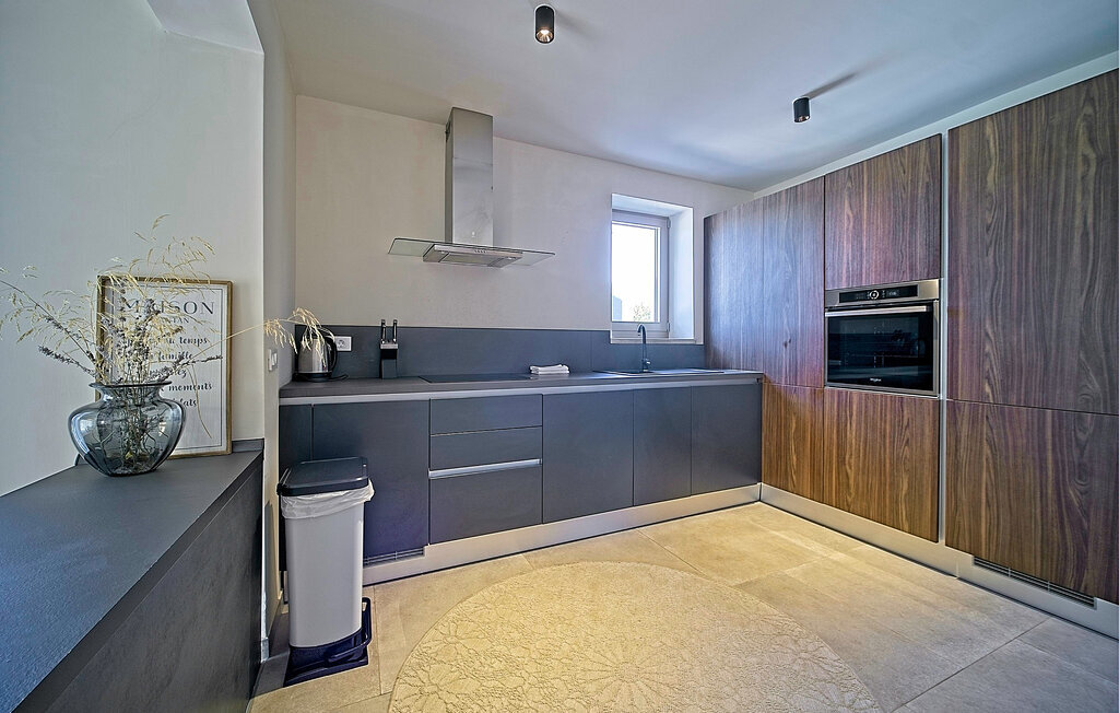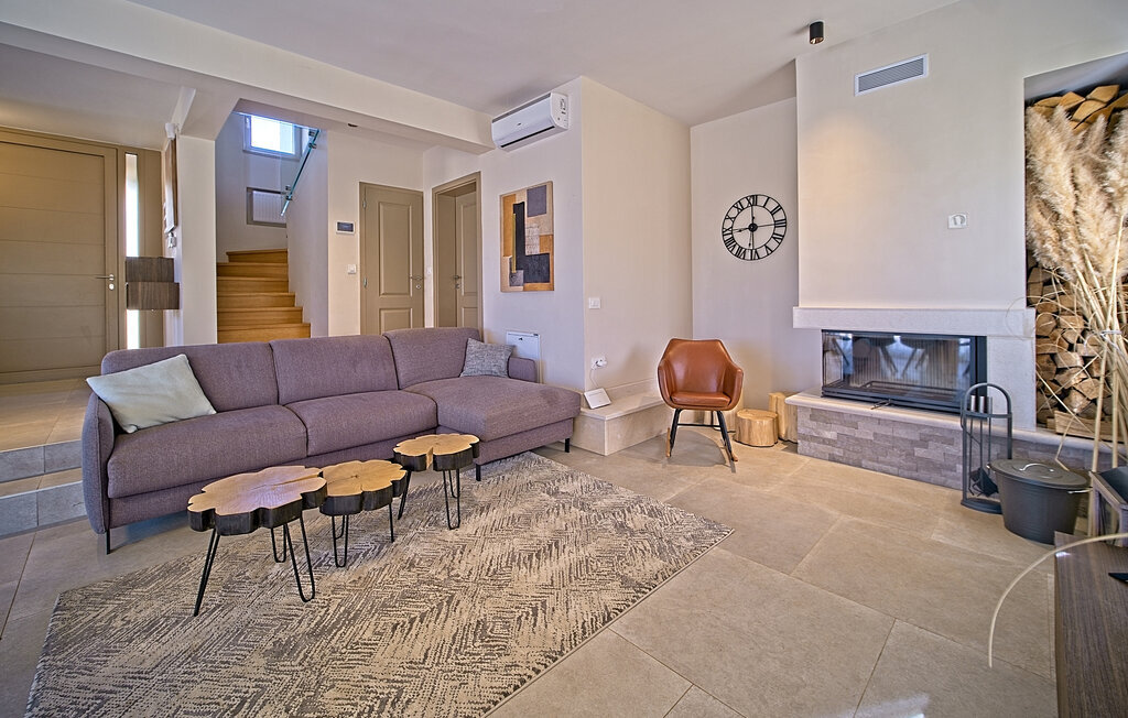 Cette maison conviviale séduit par son élégance intemporelle et son confort agréable. Des fenêtres du sol au plafond laissent entrer beaucoup de lumière du jour à l'intérieur, tandis qu'un grand canapé vous invite à vous détendre agréablement. Écoutez ici votre musique préférée ou regardez votre série préférée en streaming. Dans la cuisine moderne, vous pouvez préparer de délicieux plats et les servir avec un verre de vin croate.