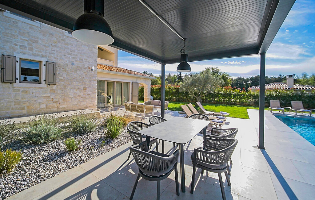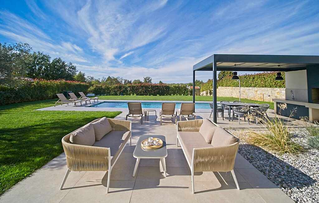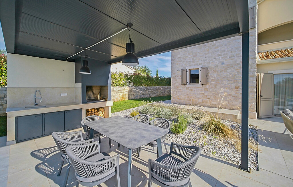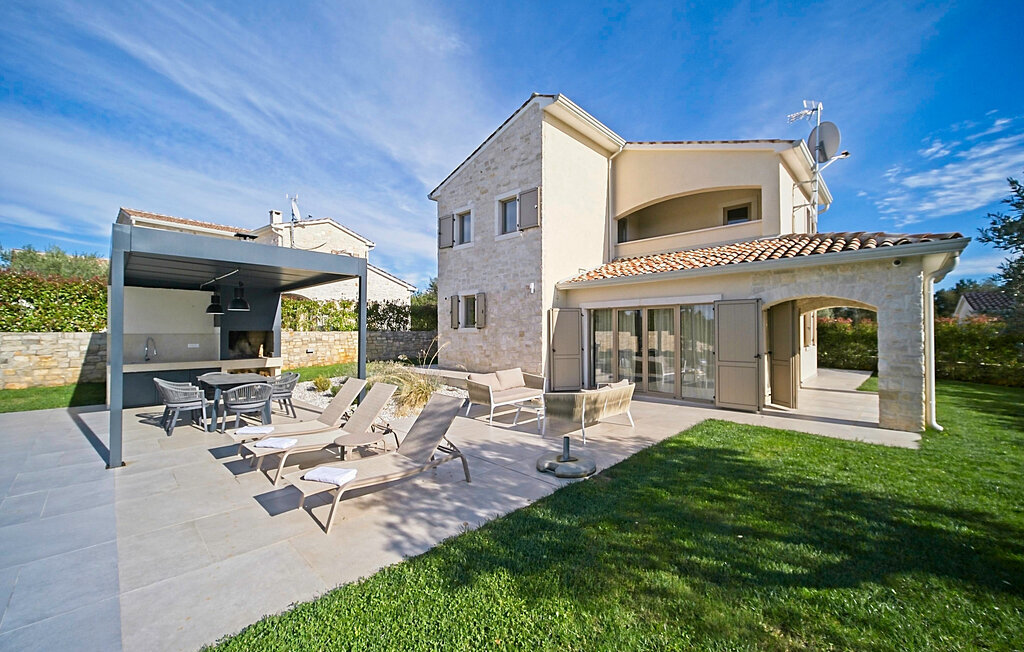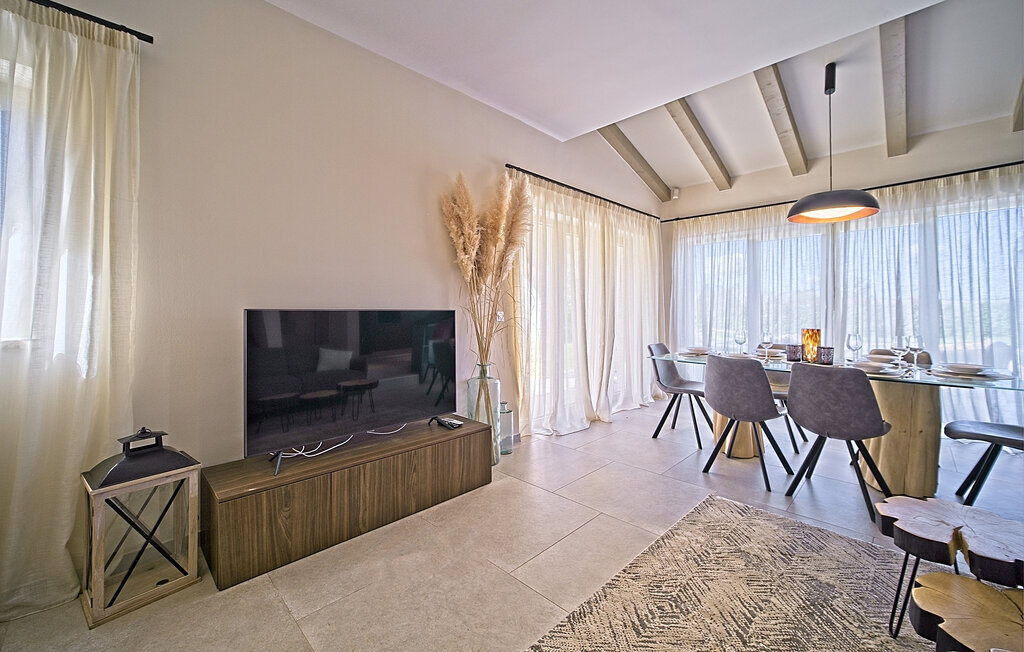 Cette maison conviviale séduit par son élégance intemporelle et son confort agréable. Des fenêtres du sol au plafond laissent entrer beaucoup de lumière du jour à l'intérieur, tandis qu'un grand canapé vous invite à vous détendre agréablement. Écoutez ici votre musique préférée ou regardez votre série préférée en streaming. Dans la cuisine moderne, vous pouvez préparer de délicieux plats et les servir avec un verre de vin croate.