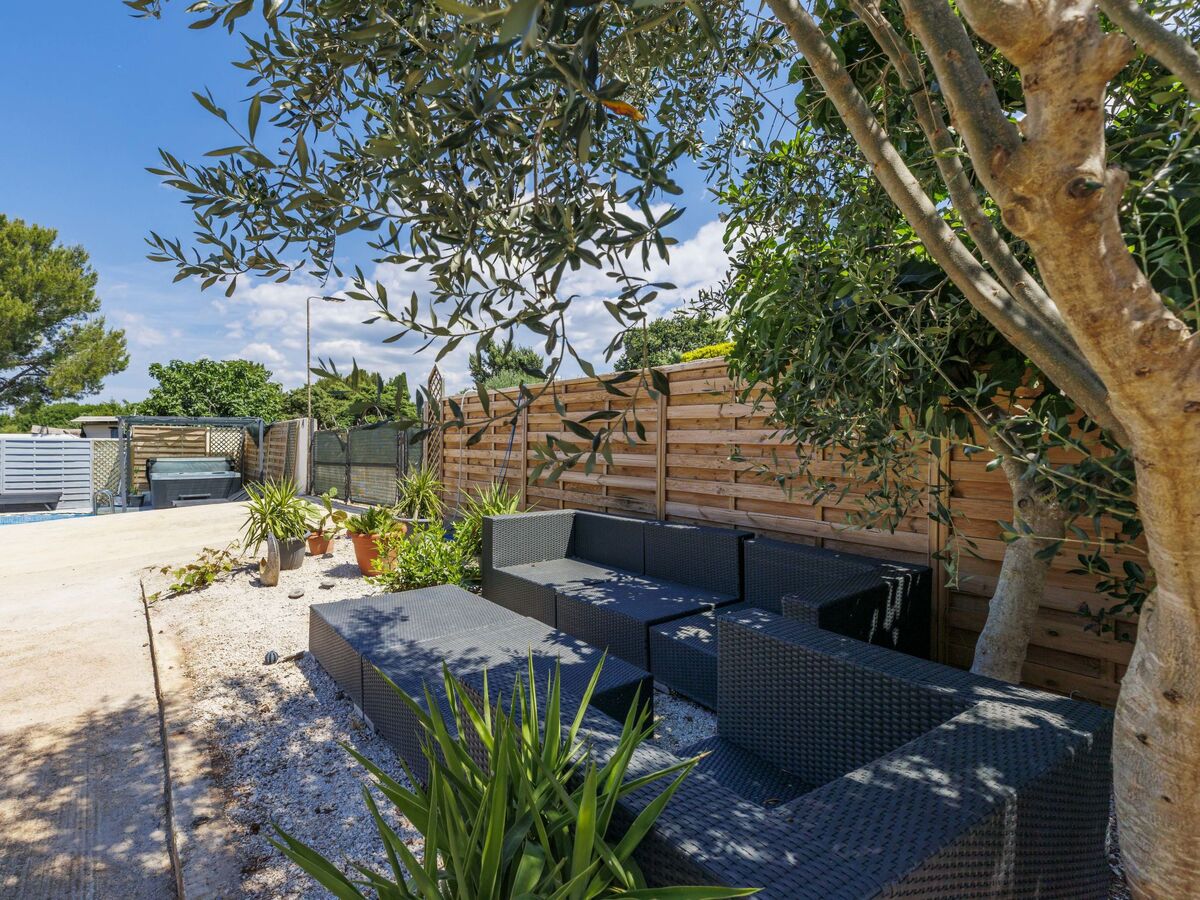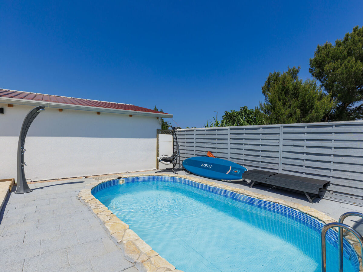 En commun: terrain 150 m2 (clôturé), piscine rectangulaire (5 x 3 m, profondeur 140 cm, disponibilité saisonnière: 01.Avr.
