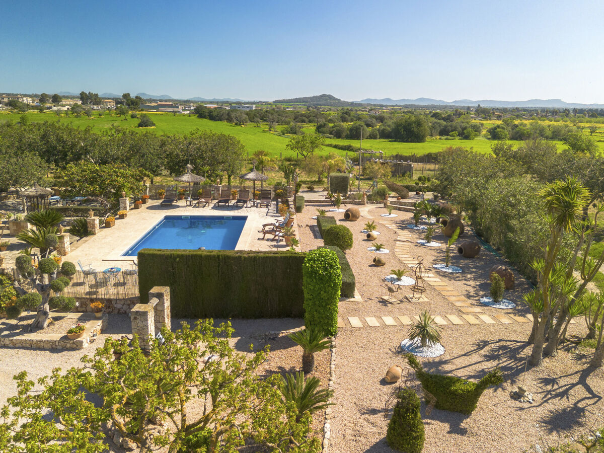 En-dehors de la localité, à 1.5 km du centre de Porreres, situation tranquille, ensoleillée, à 19 m de la mer, dans la verdure.