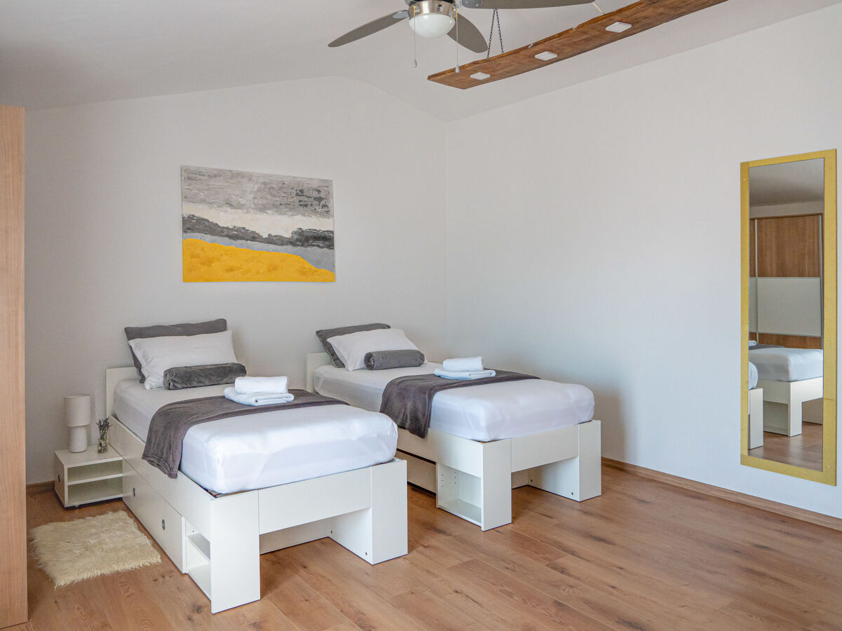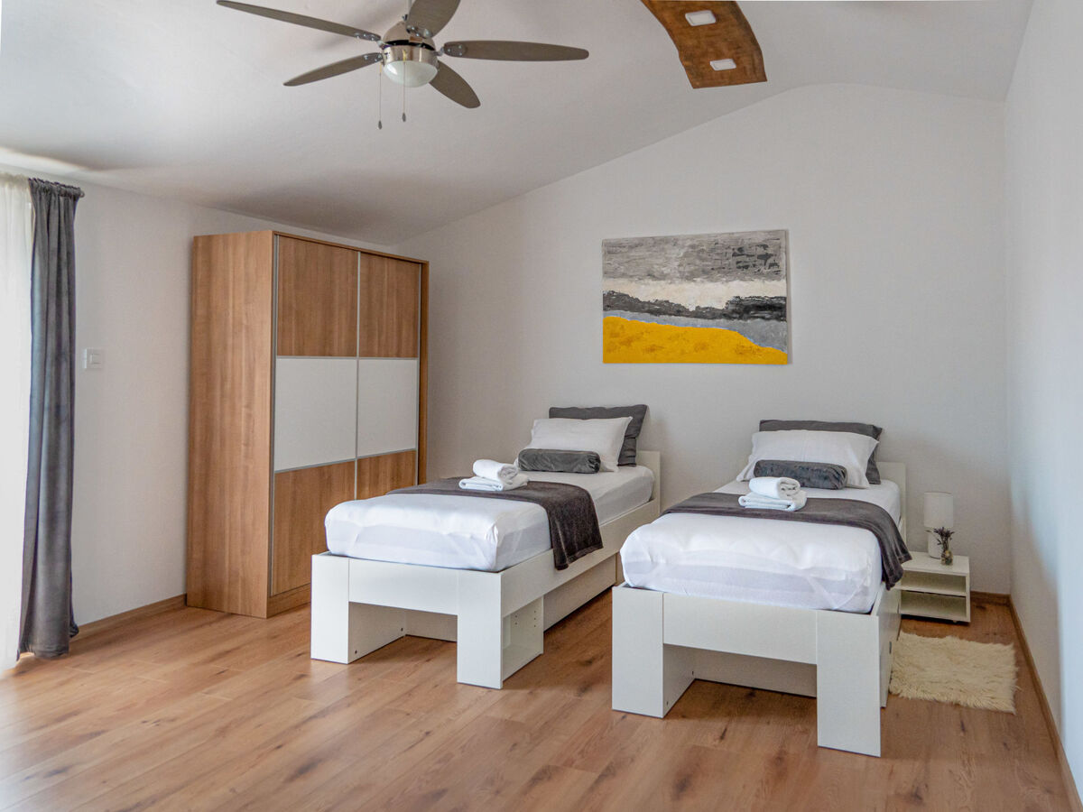 1 chambre avec 2 lits (90 cm, longueur 200 cm), TV (satellite) et ventilateur.