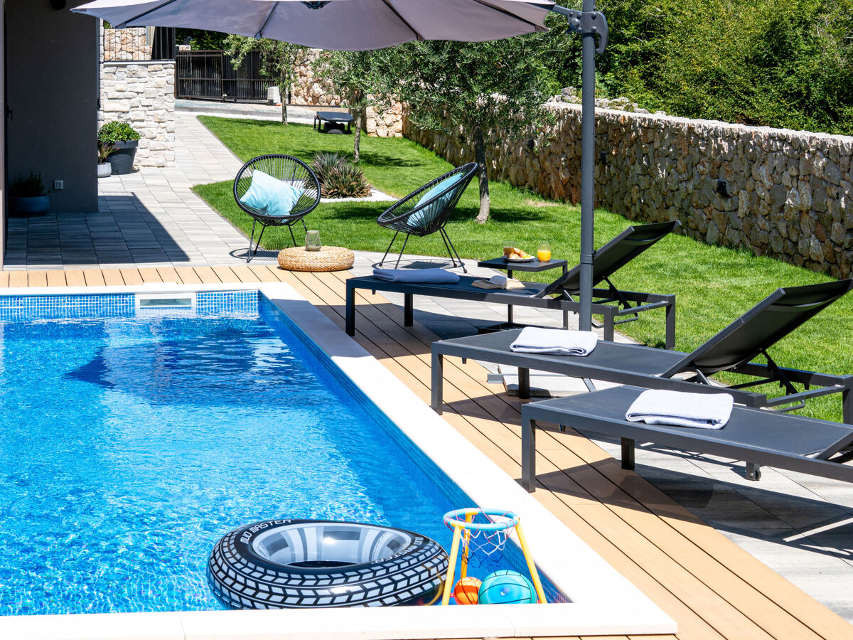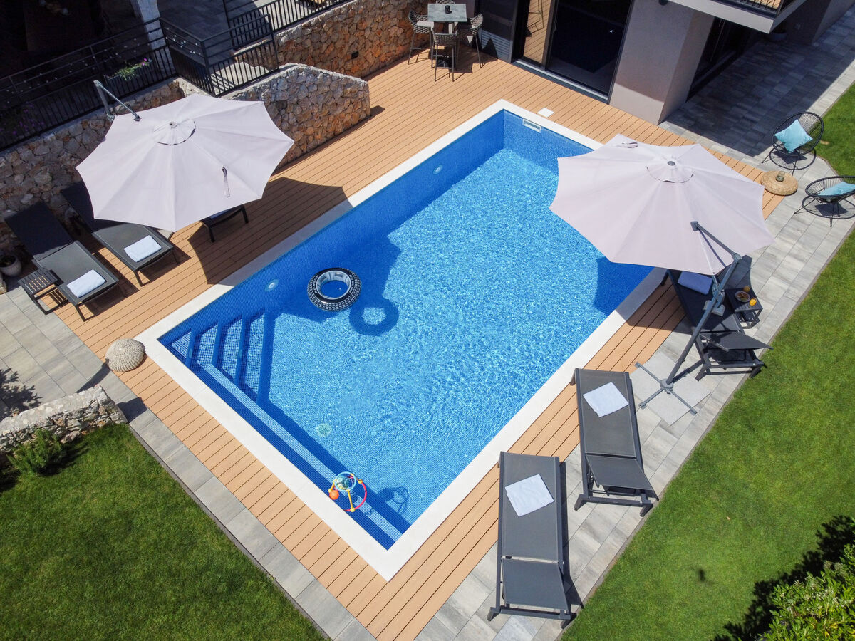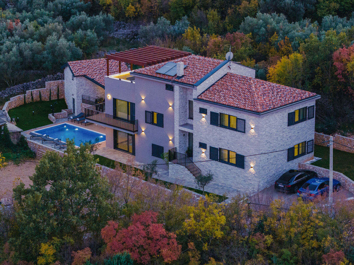 À 4 km du centre de Dobrinj, à 6 km du centre de Malinska, situation tranquille, ensoleillée, surélevée, à 3.5 km de la mer, à 3.5 km de la plage, dans une impasse.