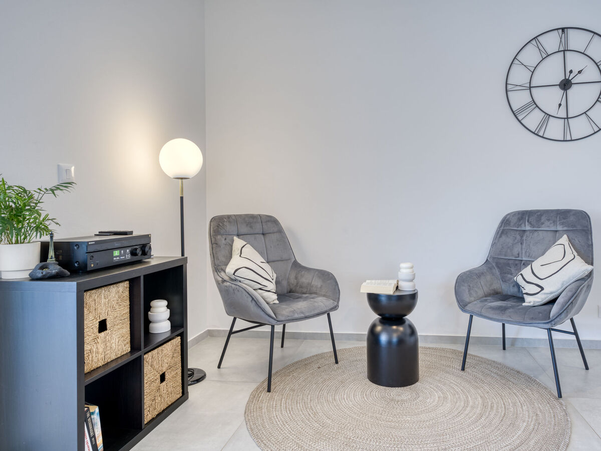 Aménagement confortable et moderne: séjour/salle à manger avec TV (satellite).
