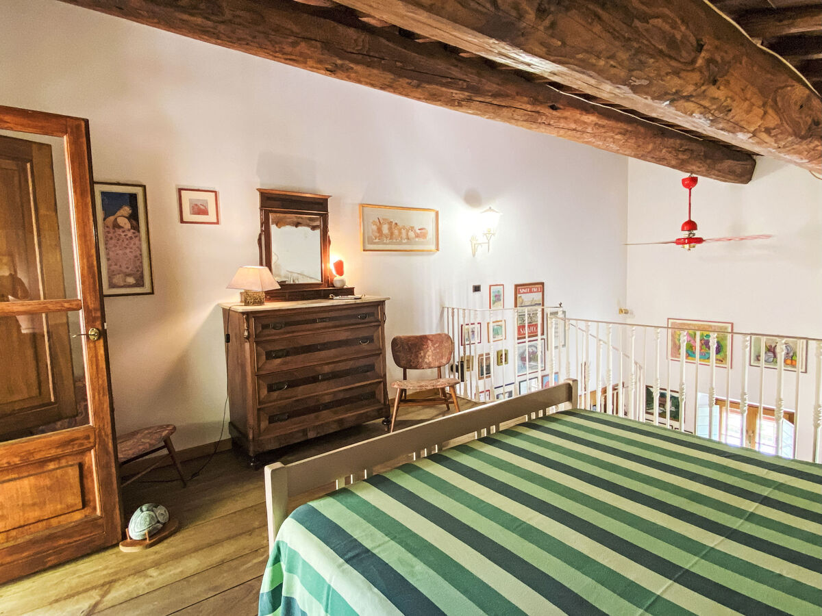 À l'étage supérieur: (escalier en colimaçon) galerie pergola mansardée avec 1 lit double.