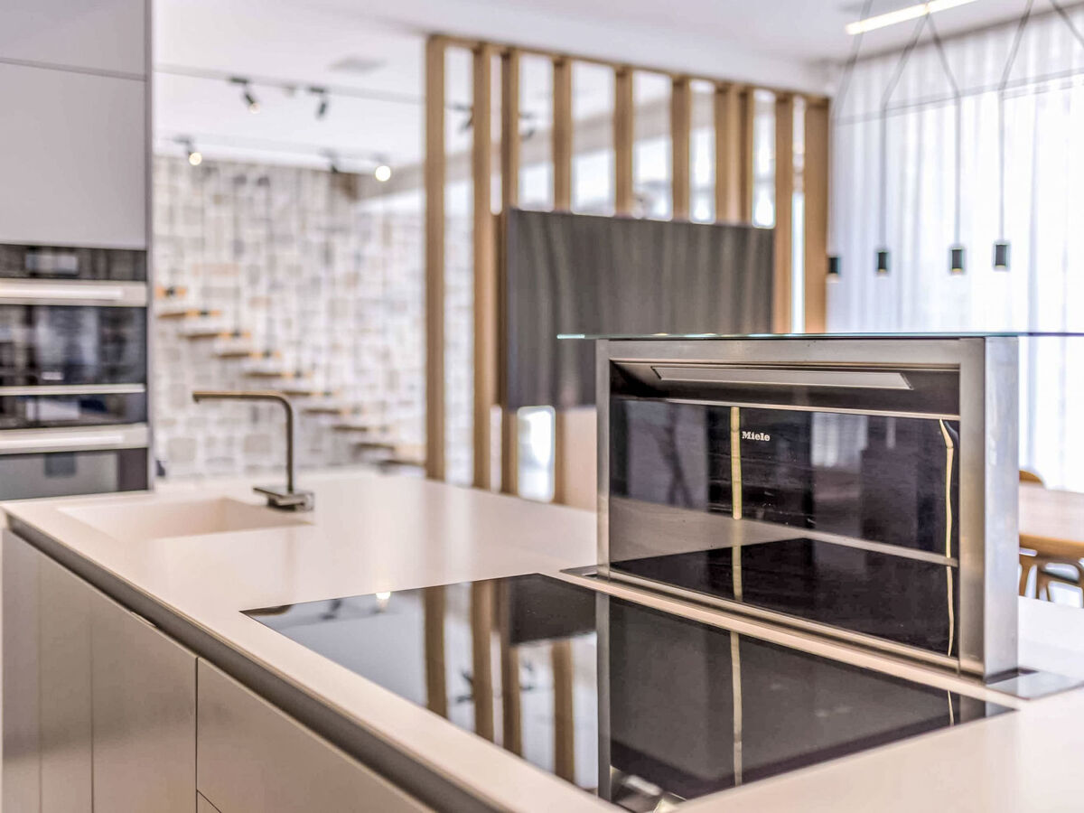 Cuisine ouverte (four, lave-vaisselle, 4 plaques vitrocéramiques, grille-pain, bouilloire électrique, micro-ondes, congélateur, cafetière électrique).