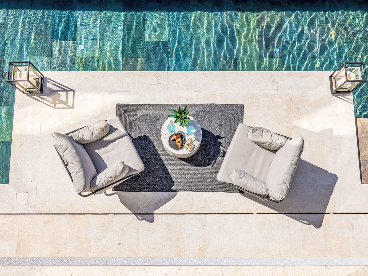 Meubles de terrasse, barbecue (portable), chaises longues (6).