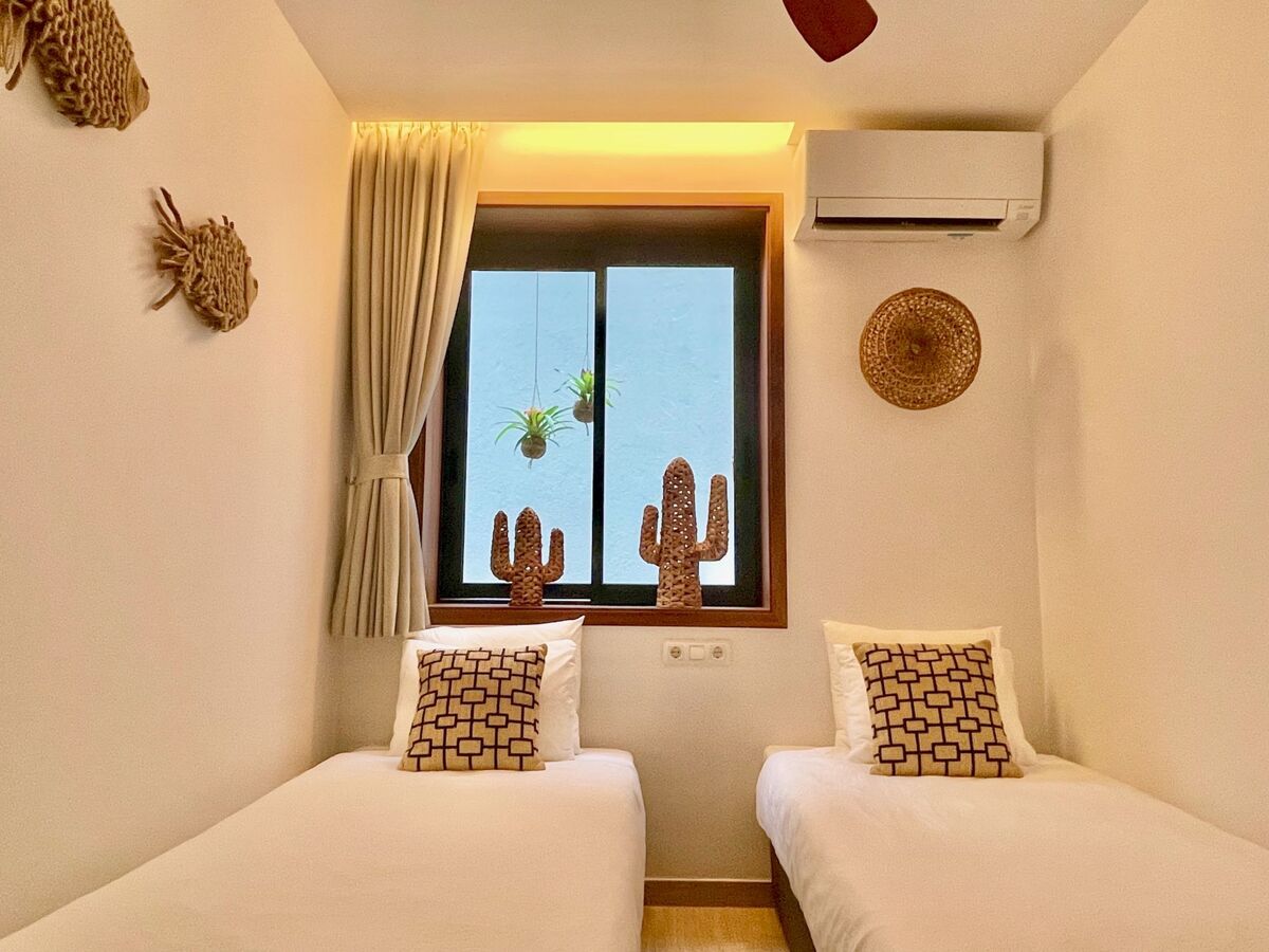 3 chambres doubles, chaque chambre avec: 2 lits (90 cm, longueur 210 cm), air-conditionné et ventilateur.
