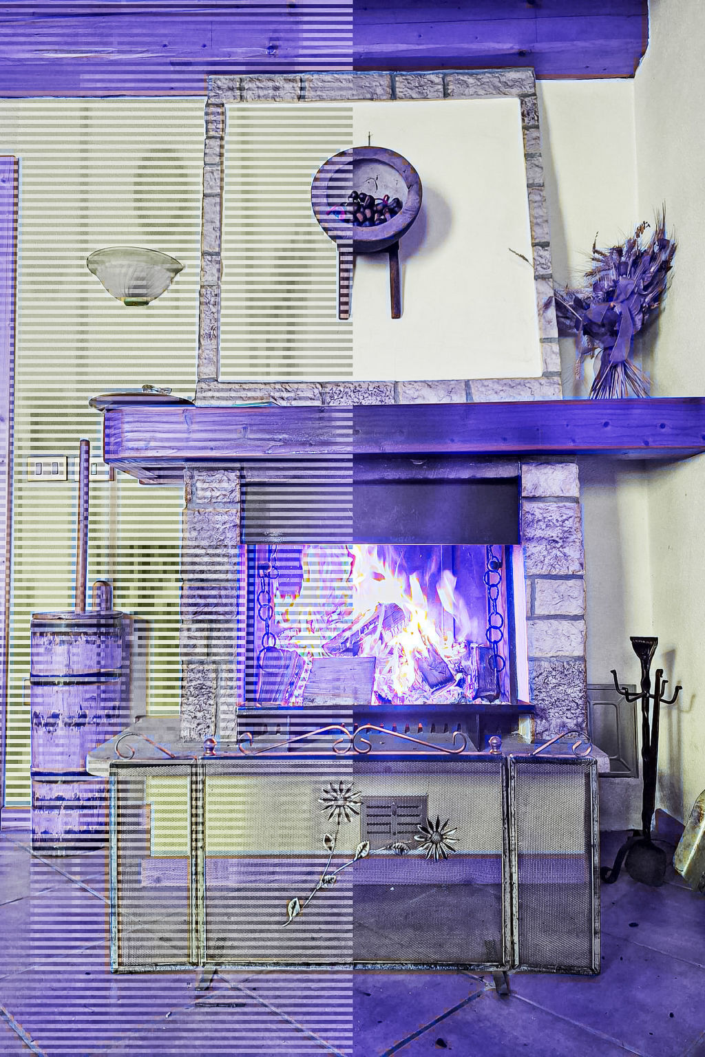 Séjour avec cheminée (uniquement à titre de décoration), TV.