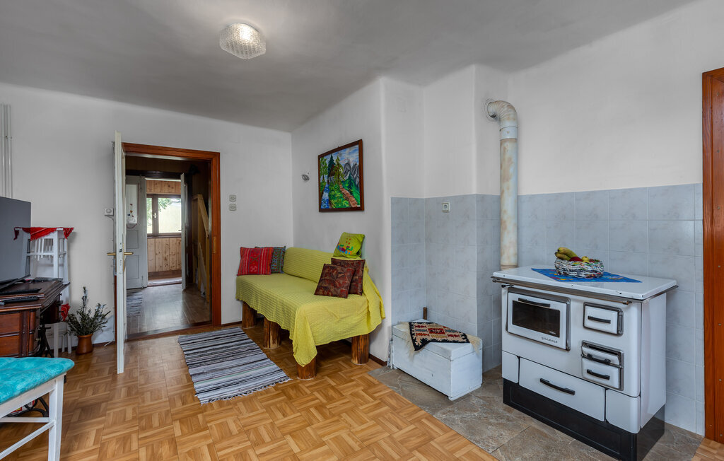 Cette maison accueillante vous reçoit avec un mélange réussi de rusticité et de convivialité. Les boiseries, les poutres apparentes et la cuisinière traditionnelle créent une atmosphère à la fois confortable et nostalgique. Détendez-vous sur le canapé, regardez votre série préférée en streaming ou préparez un délicieux repas dans la cuisine moderne.