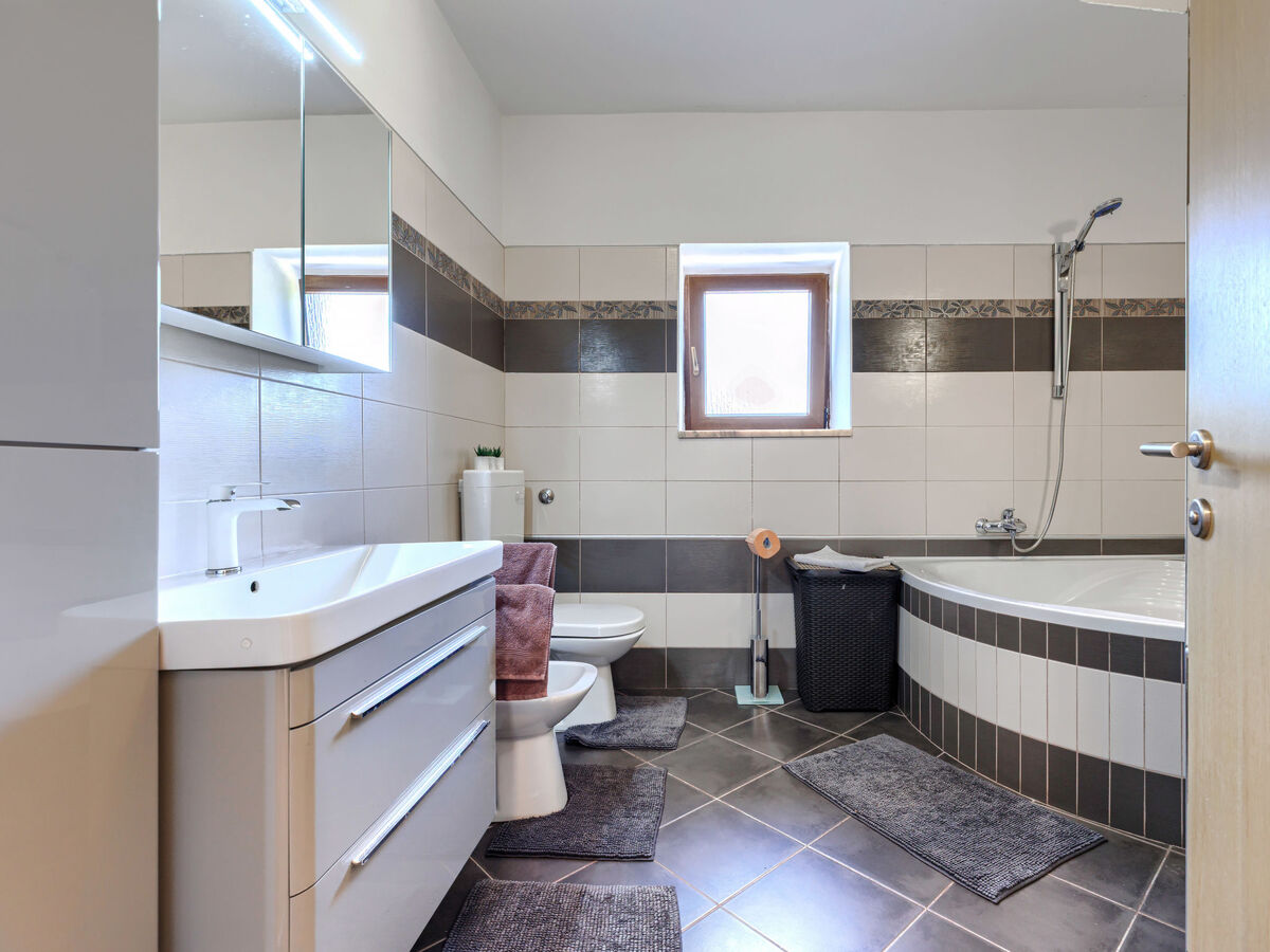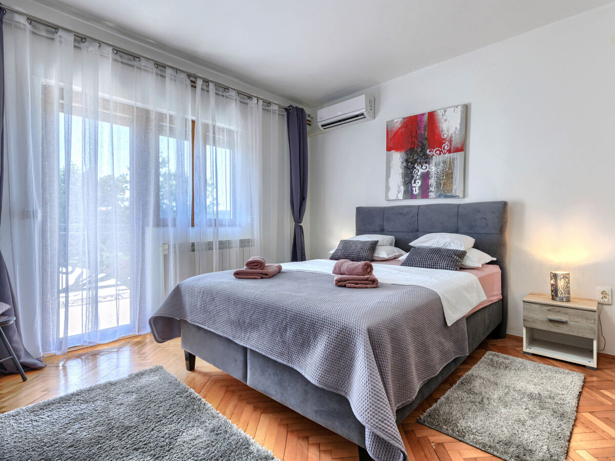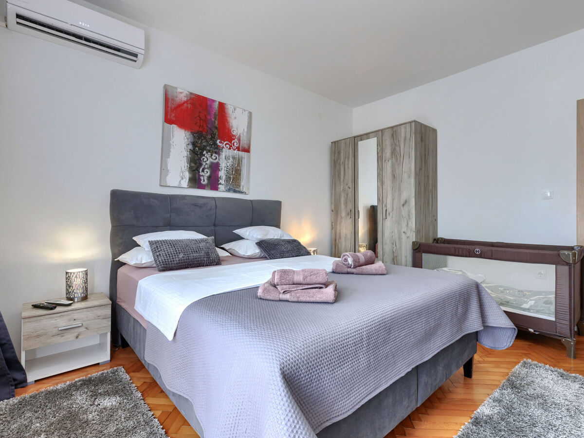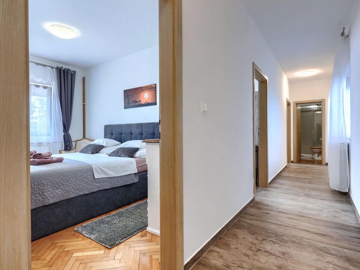 À l'étage supérieur: 3 chambres, chaque chambre avec: 1 grand-lit (160 cm, longueur 200 cm), TV (satellite) (écran plat), air-conditionné.