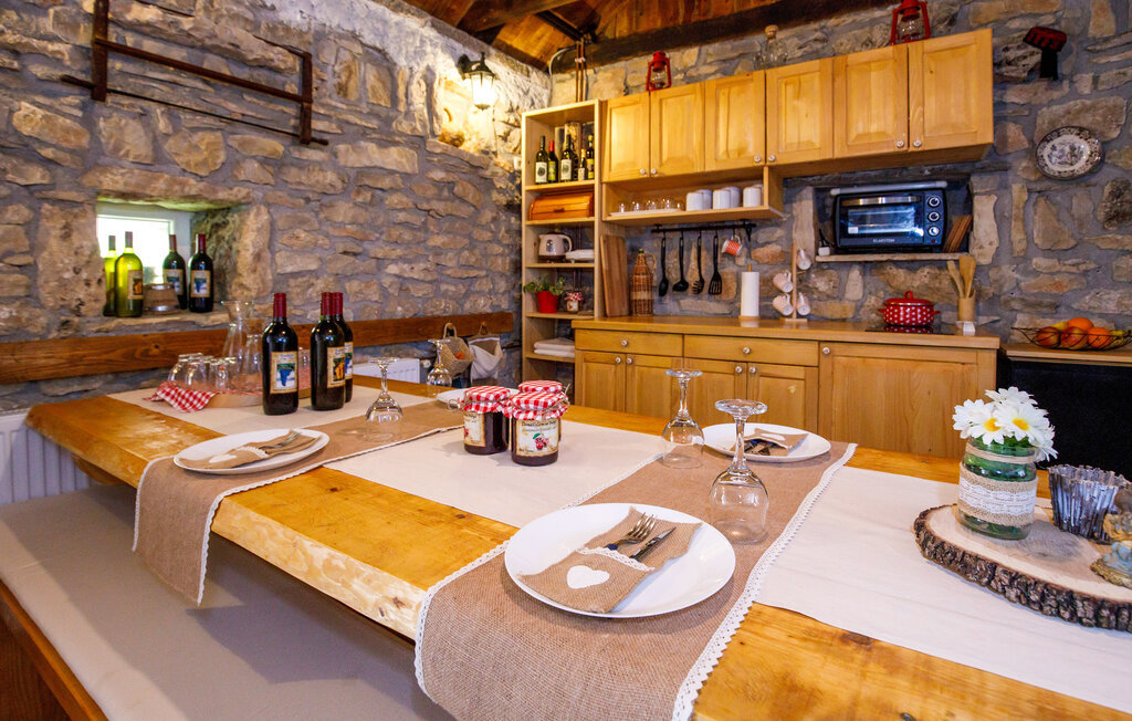 Vous serez accueilli par un confort rustique et de charmants détails traditionnels lorsque vous commencerez vos vacances au calme, loin du quotidien, dans cette maison de campagne restaurée avec beaucoup d'amour. Préparez de délicieux repas et savourez-les autour d'une table en bois massif. Réjouissez-vous des joyeuses soirées de jeux ou des heures de lecture relaxantes sur le canapé.