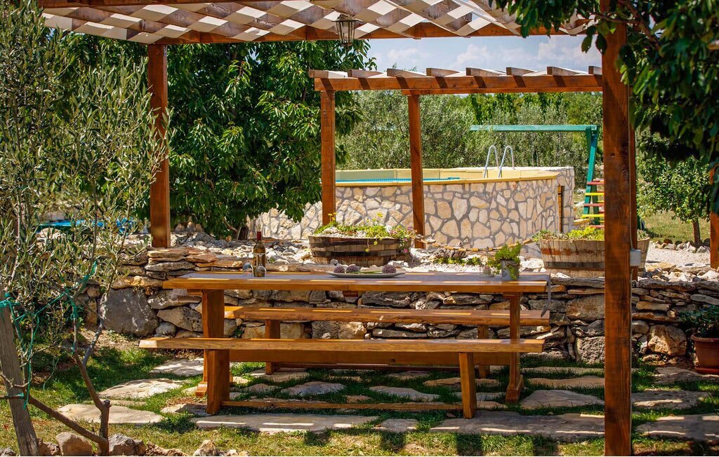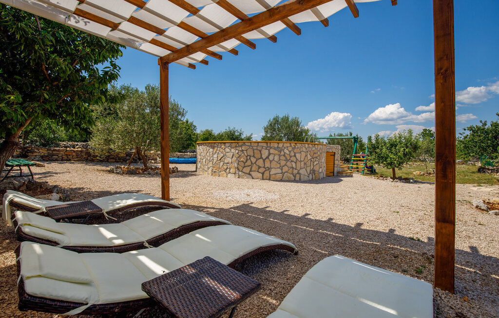 Sur votre vaste terrain naturel, vous pouvez vous imprégner de l'atmosphère paisible tout en faisant le plein d'énergie sur la chaise longue, en dînant à l'ombre des arbres ou en profitant de moments rafraîchissants dans la piscine ronde.