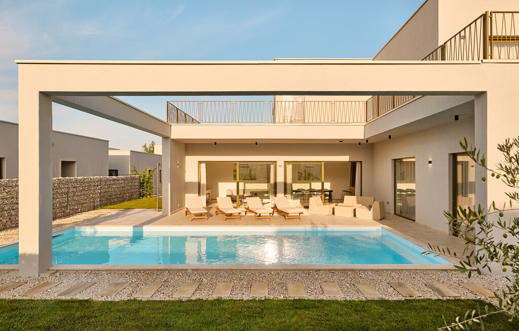 Ce complexe situé dans la ville pittoresque de Tar allie harmonieusement le luxe à la beauté naturelle du paysage istrien. Toutes les villas sont conçues comme des unités privées, chacune avec son propre jardin, sa piscine et son parking, afin d'offrir aux résidents un maximum de confort et d'intimité. Il y a en outre un bâtiment central avec une réception.