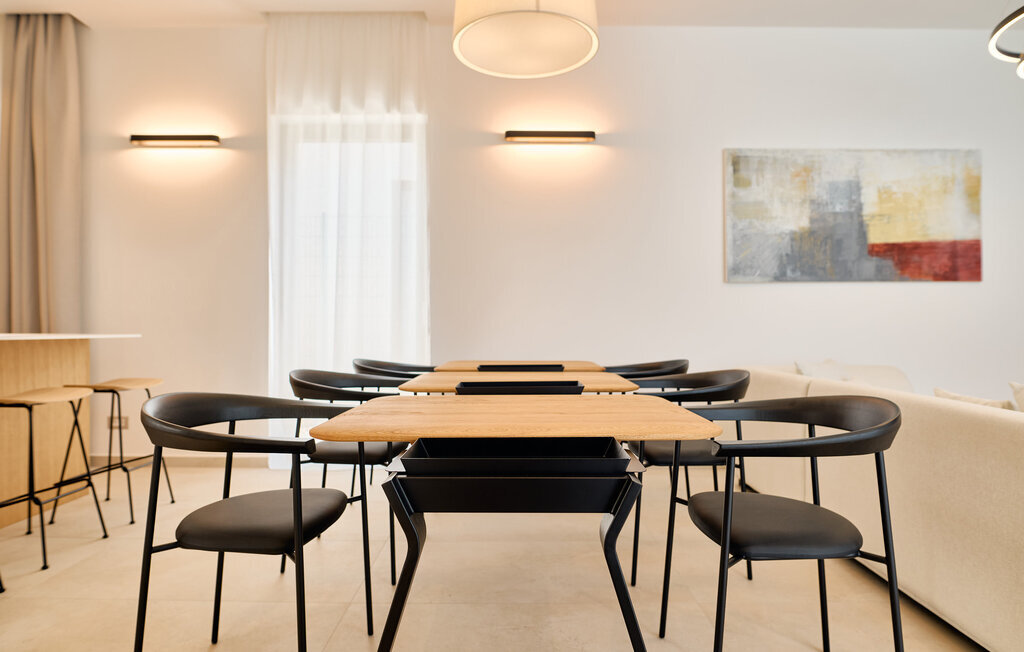 Les espaces intérieurs mettent l'accent sur la chaleur et la fonctionnalité, caractérisées par un design minimaliste et des matériaux de qualité. Détendez-vous dans le salon ouvert avec un canapé confortable, des meubles modernes et de grandes fenêtres panoramiques. Profitez de l'élégante salle à manger pour prendre vos repas en commun ou préparez des délices culinaires dans la belle cuisine.