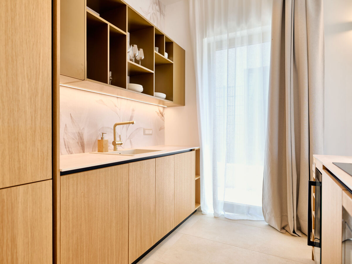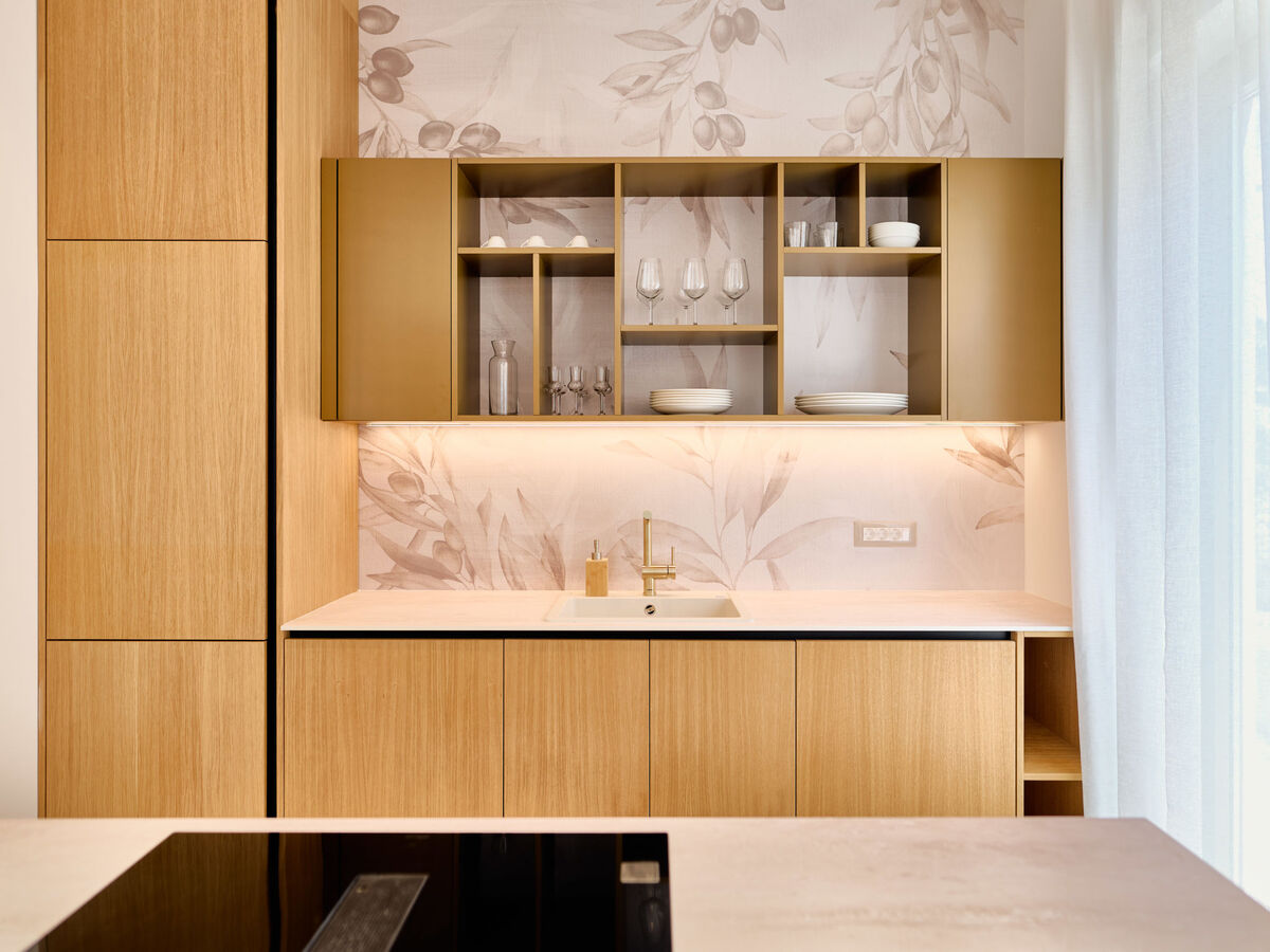 Cuisine ouverte (lave-vaisselle, 4 plaques à induction, bouilloire électrique, micro-ondes, cafetière électrique, ilot de cuisine).