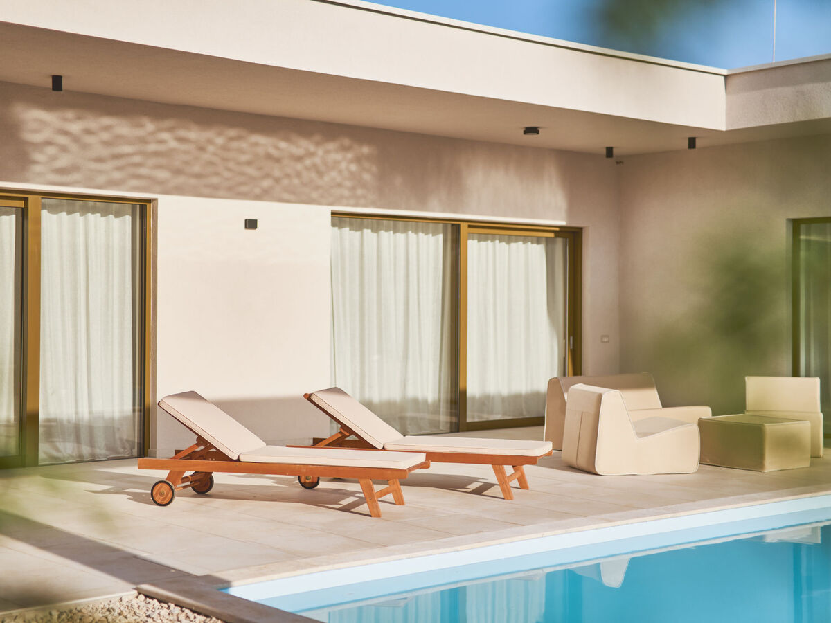 Meubles de terrasse, chaises longues.