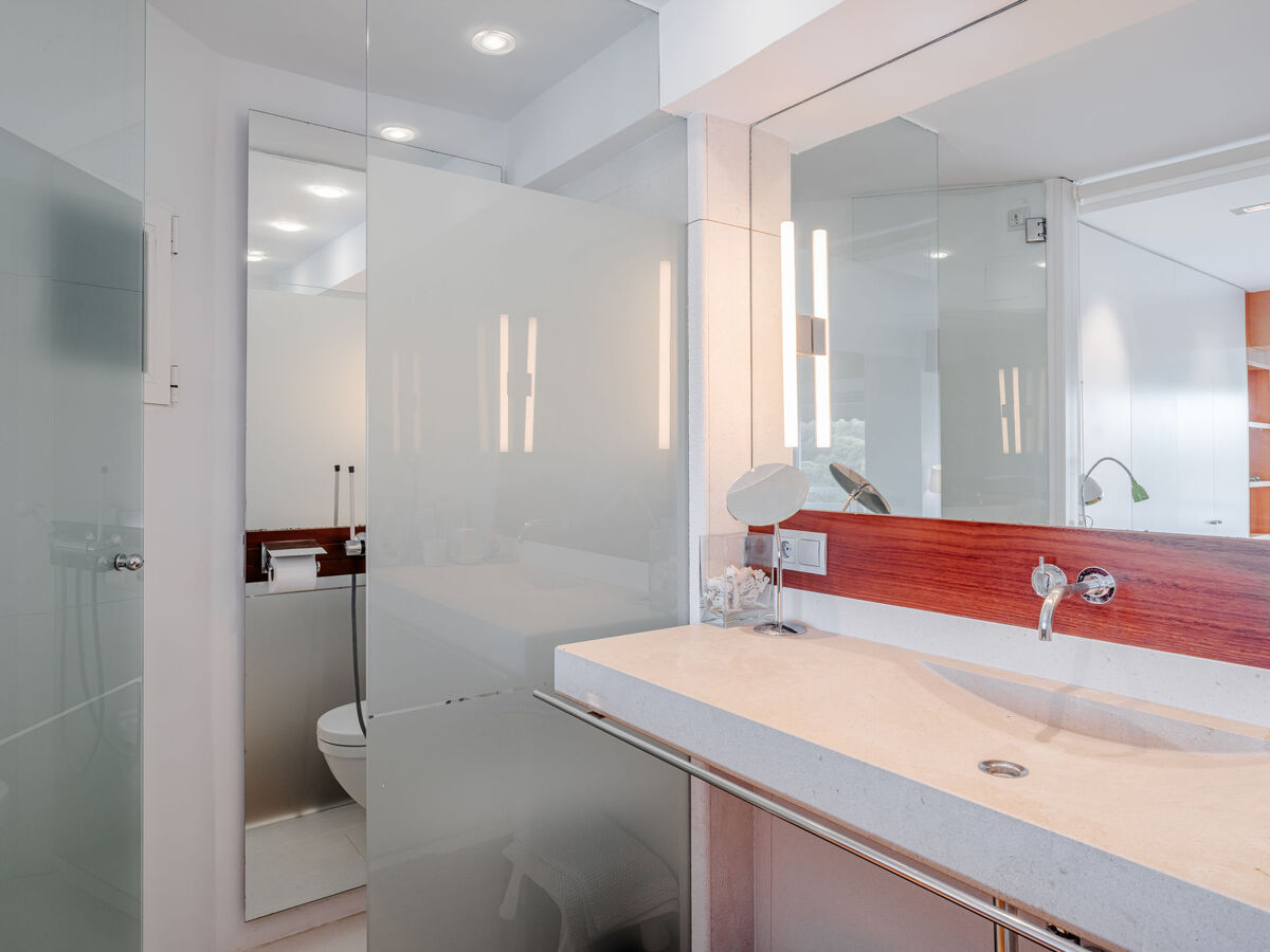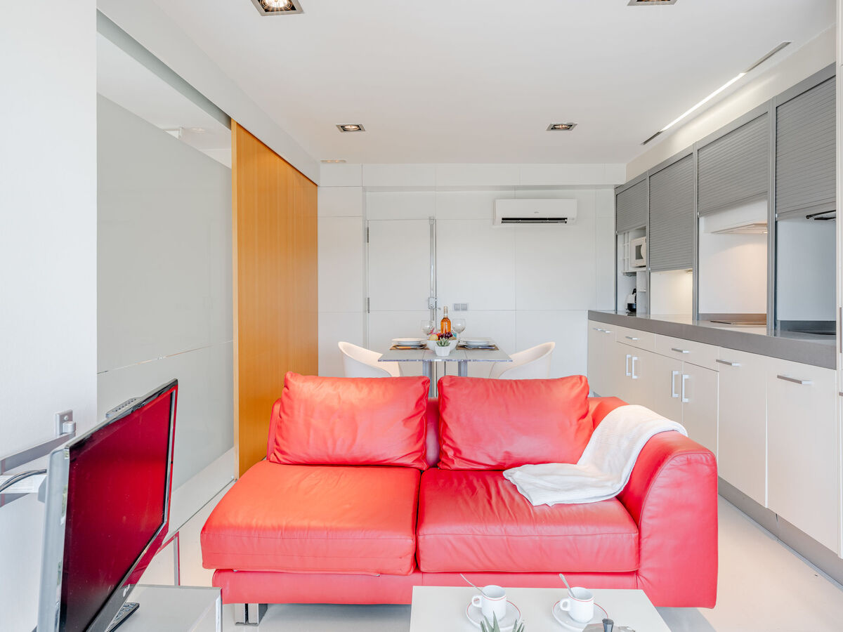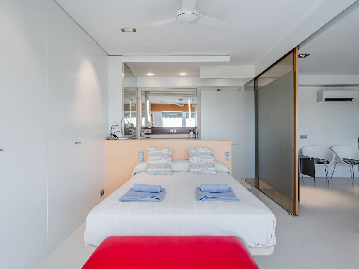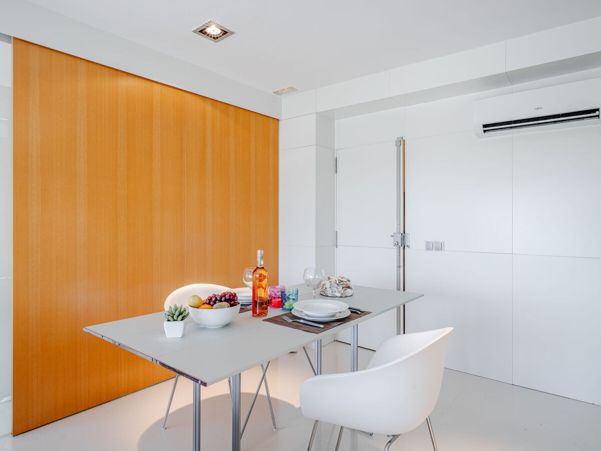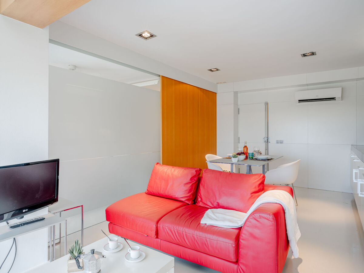 Spacieux et clair, aménagement très agréable et de style: séjour/salle à manger avec 1 grand-lit (150 cm, longueur 190 cm), WC séparés, douche, Télévision numérique, air-conditionné et chauffage à air chaud.