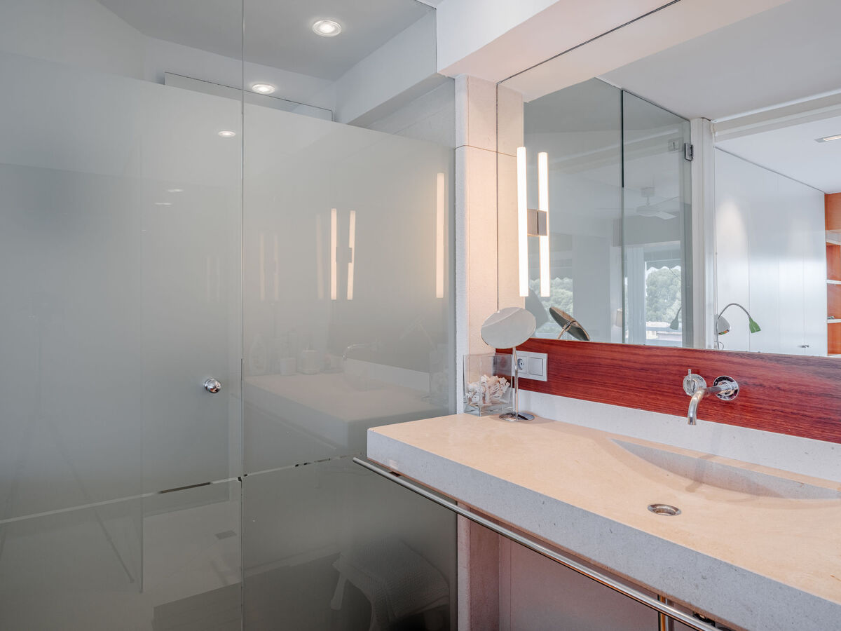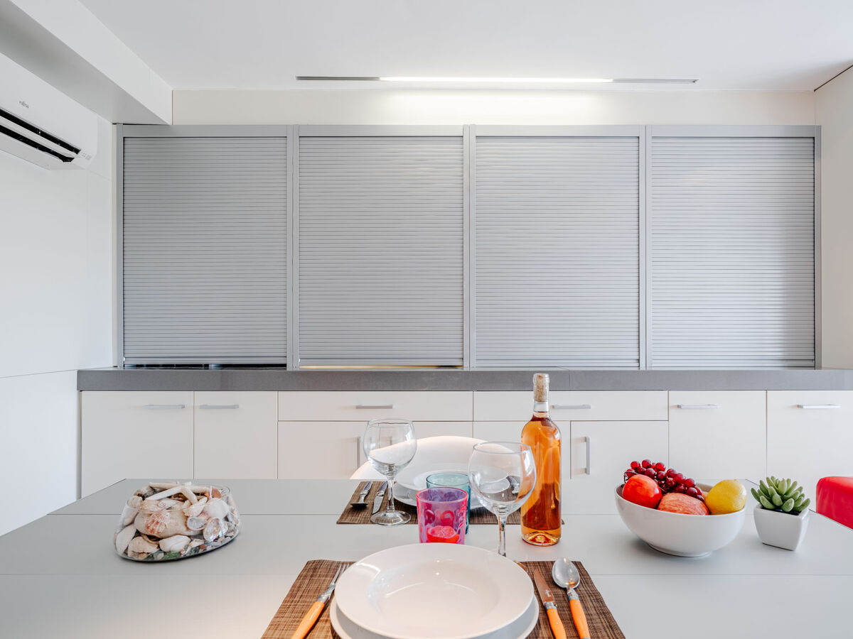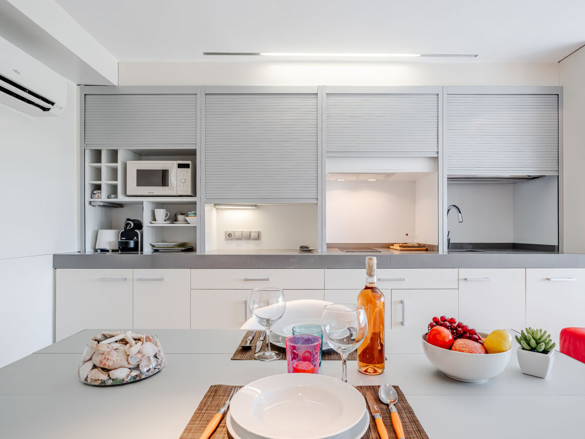 Petite cuisine (lave-vaisselle, 2 plaques vitrocéramiques, grille-pain, micro-ondes, congélateur, cafetière électrique, Capsules pour machine à café (Nespresso) (NON INCLUSES)).