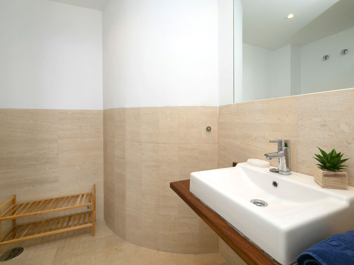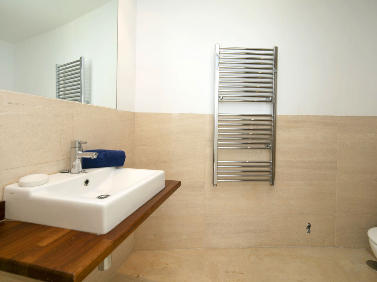 1 chambre avec 1 grand-lit (1 x 160 cm, longueur 200 cm), bain/douche/WC, double vasque, air-conditionné et chauffage à air chaud.