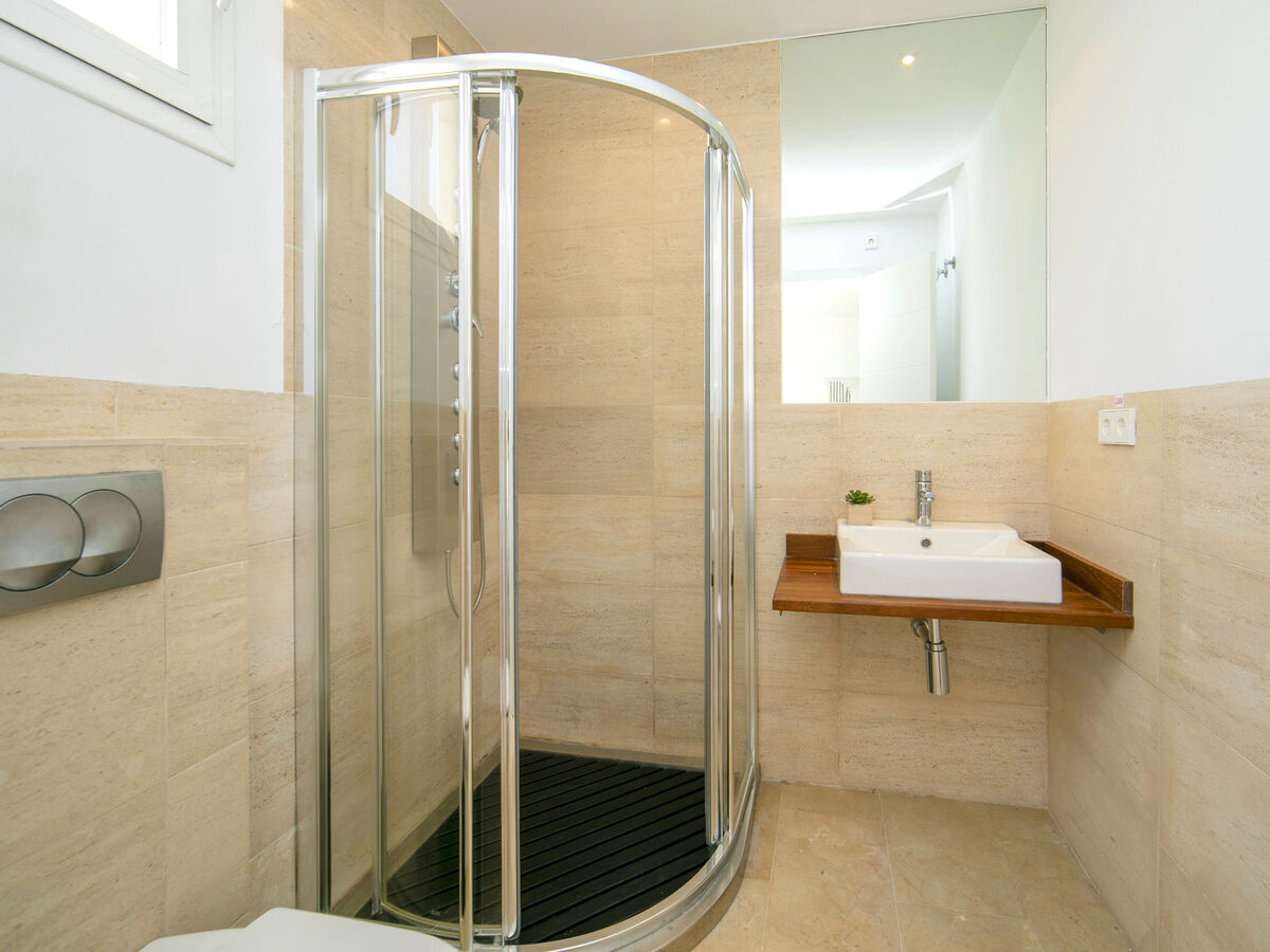 À l'étage inférieur: 1 chambre avec 1 lit double (2 x 80 cm, longueur 200 cm), douche/WC, air-conditionné et chauffage à air chaud.