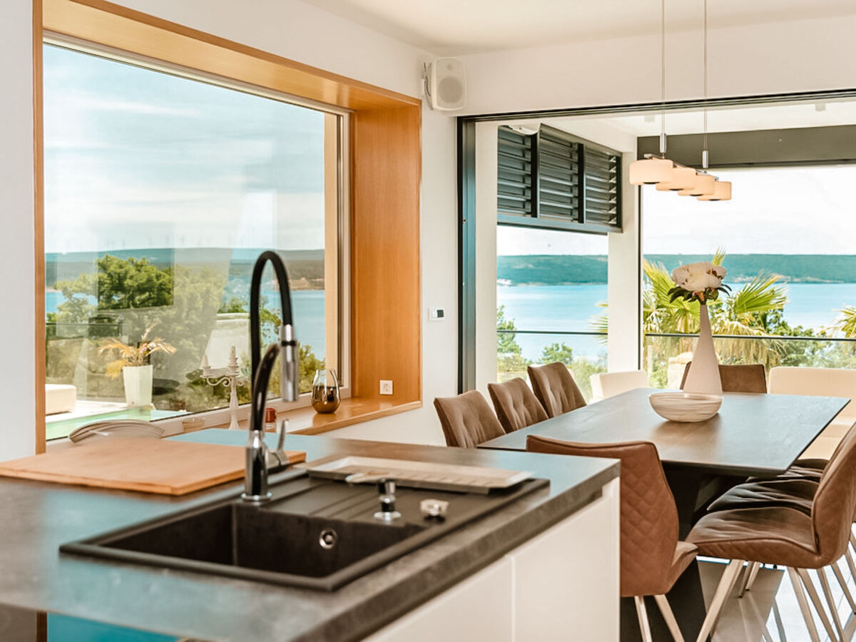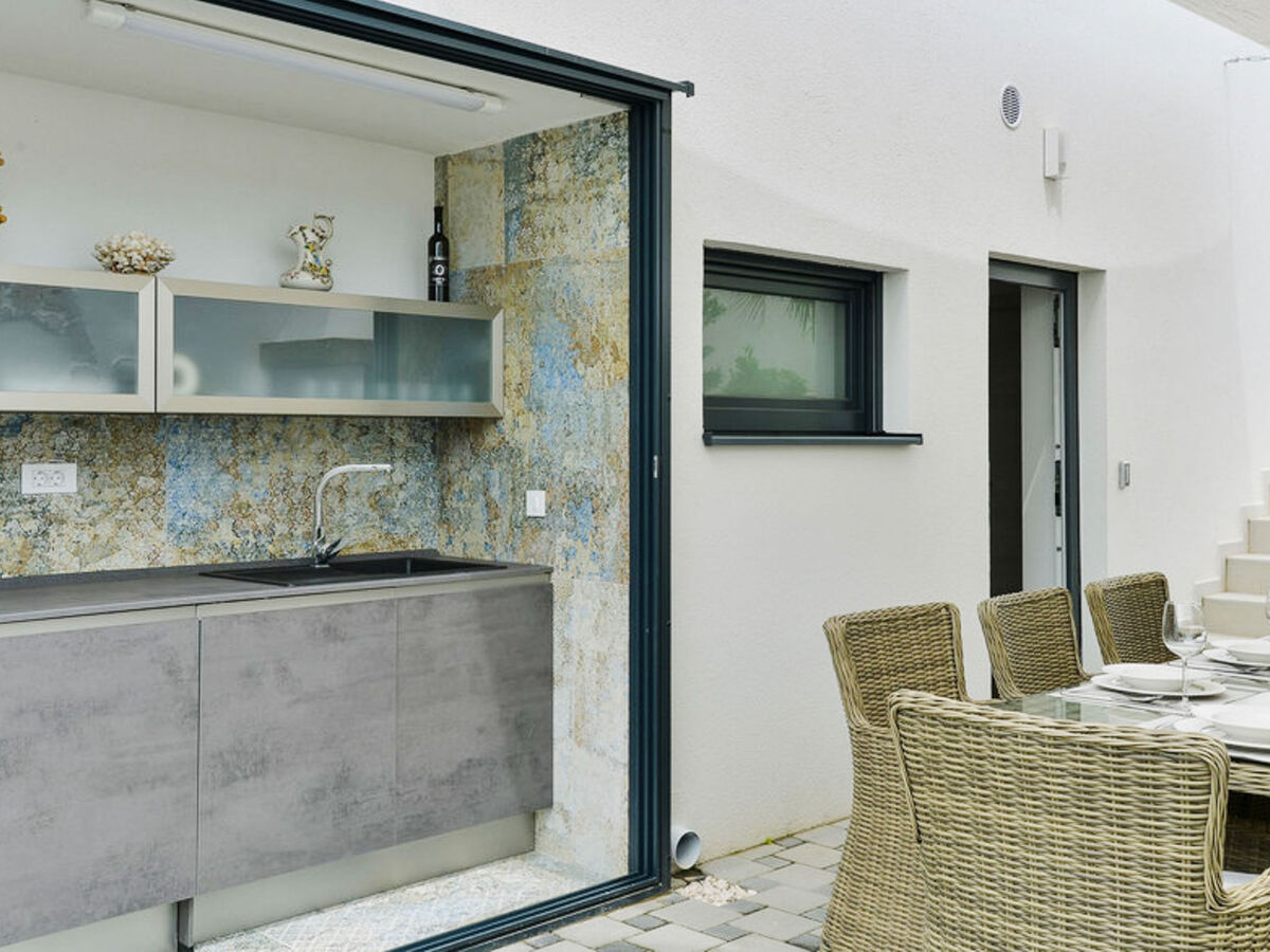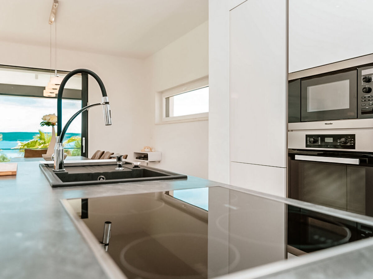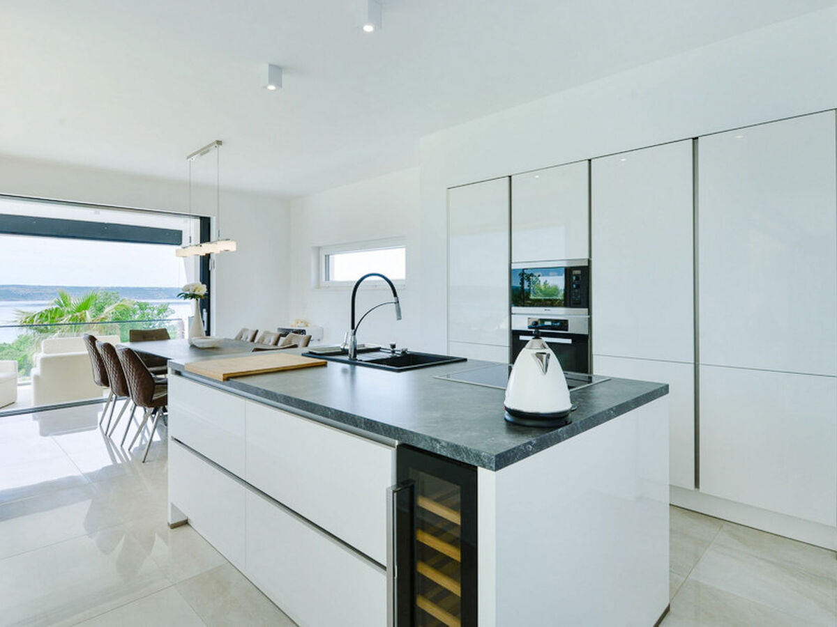Cuisine ouverte (four, lave-vaisselle, 4 plaques à induction, grille-pain, bouilloire électrique, micro-ondes, congélateur, cafetière électrique) avec air-conditionné.