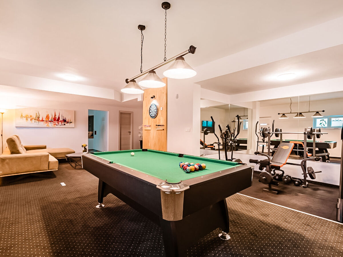 Infrastructures de la Maison: accès internet, sauna, salle fitness, billard, lave-linge, sèche-linge.