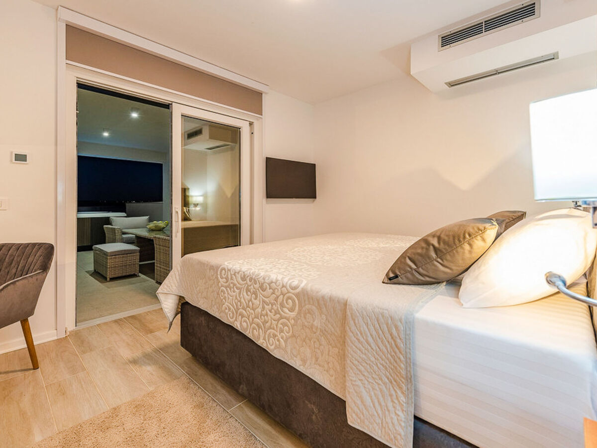 1 chambre avec 1 grand-lit (180 cm, longueur 200 cm), douche/WC, TV (satellite) et air-conditionné.