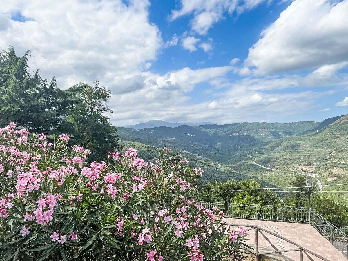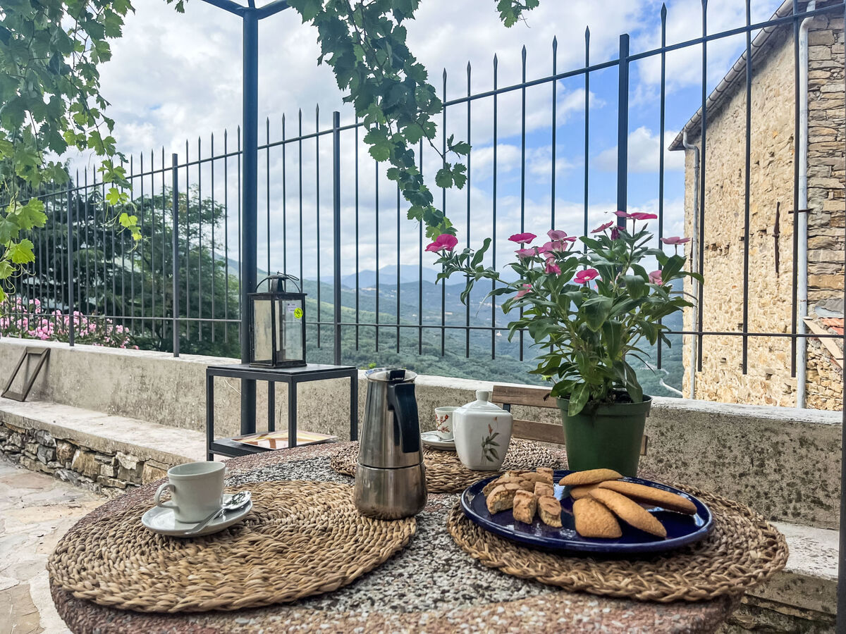 Superbe vue panoramique sur les montagnes, la vallée et la localité.