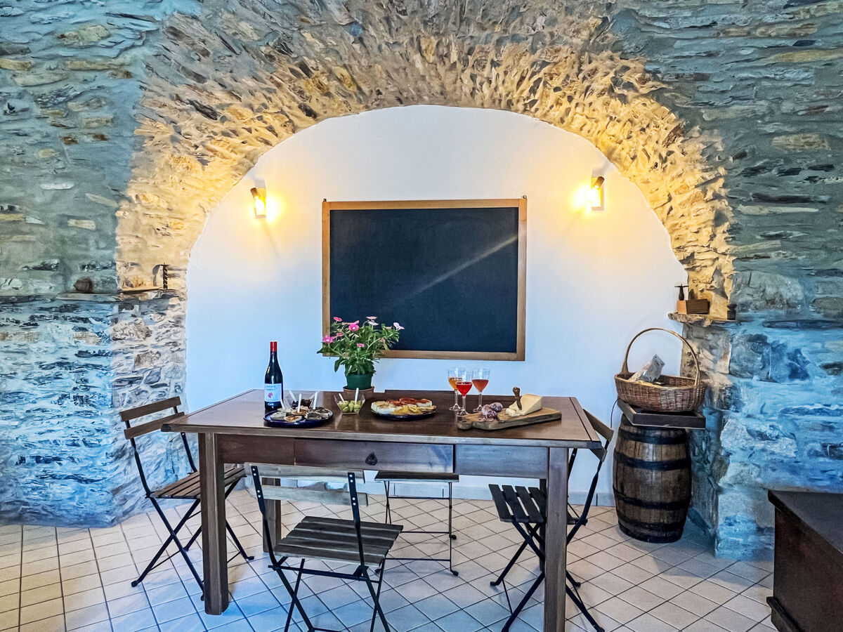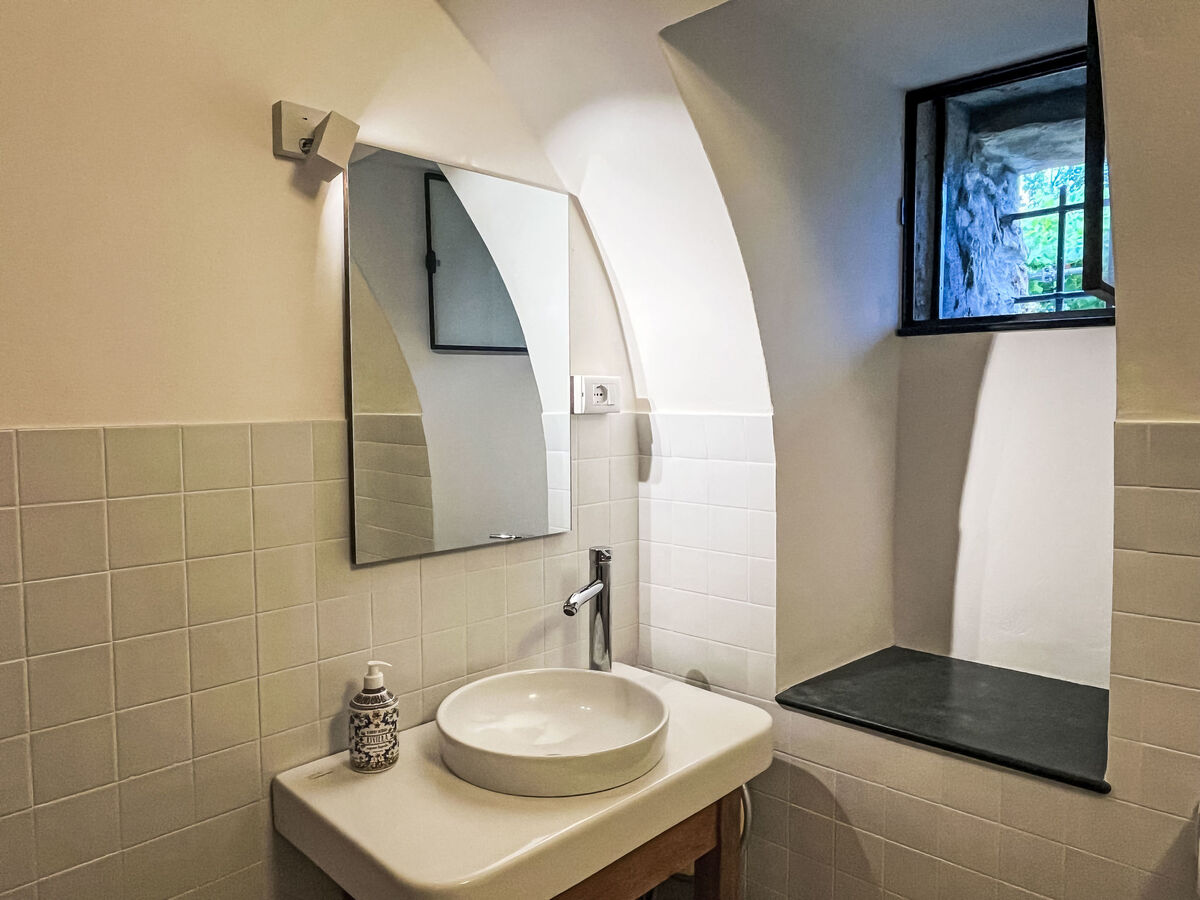 À l'étage supérieur: (escalier en colimaçon) 1 chambre avec 1 lit (90 cm, longueur 200 cm), 1 lit double (1 x 160 cm, longueur 200 cm), table pour les repas.