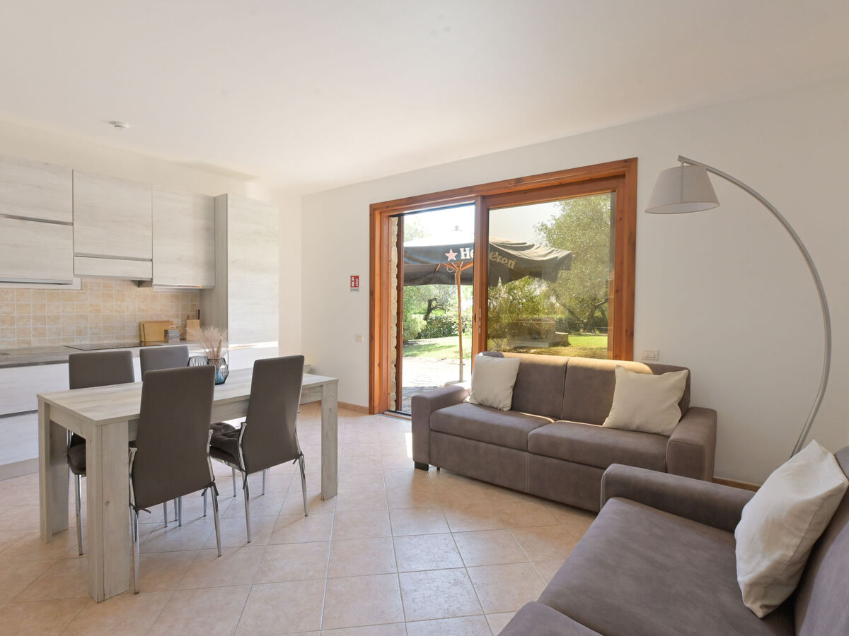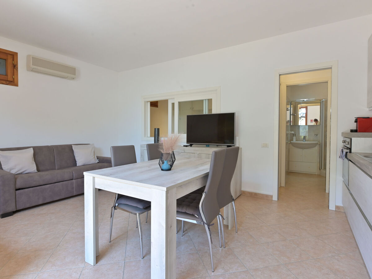 Séjour/salle à manger avec 1 divan-lit double, TV et air-conditionné.