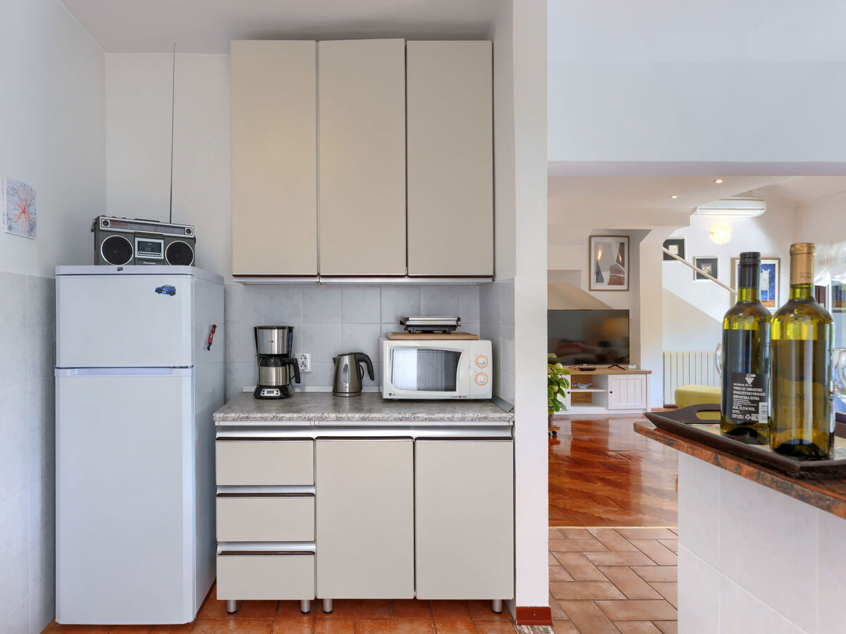Cuisine ouverte (four, lave-vaisselle, 4 plaques vitrocéramiques, micro-ondes, congélateur).