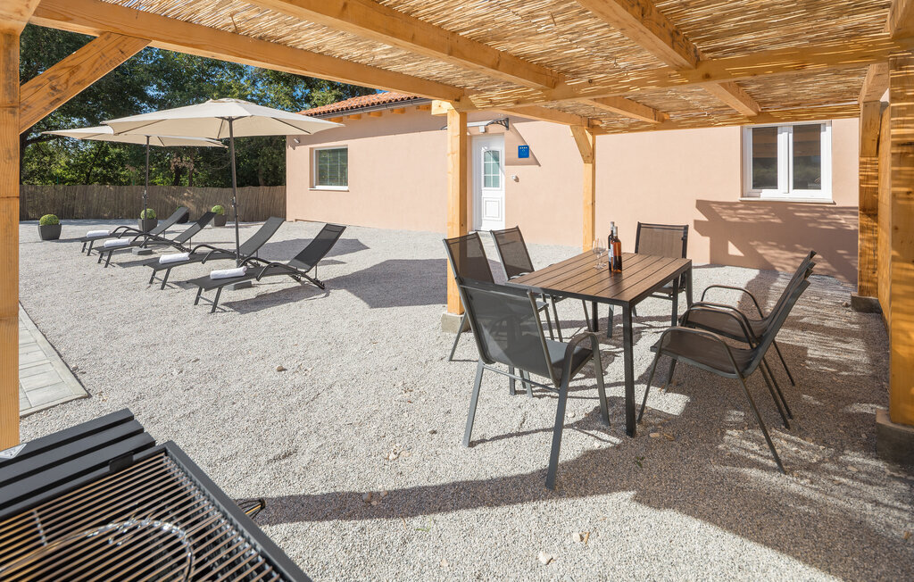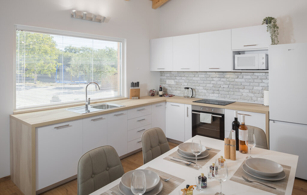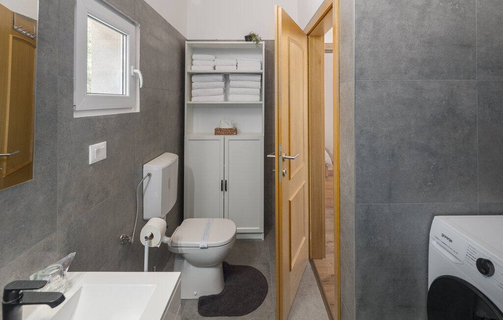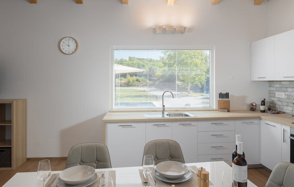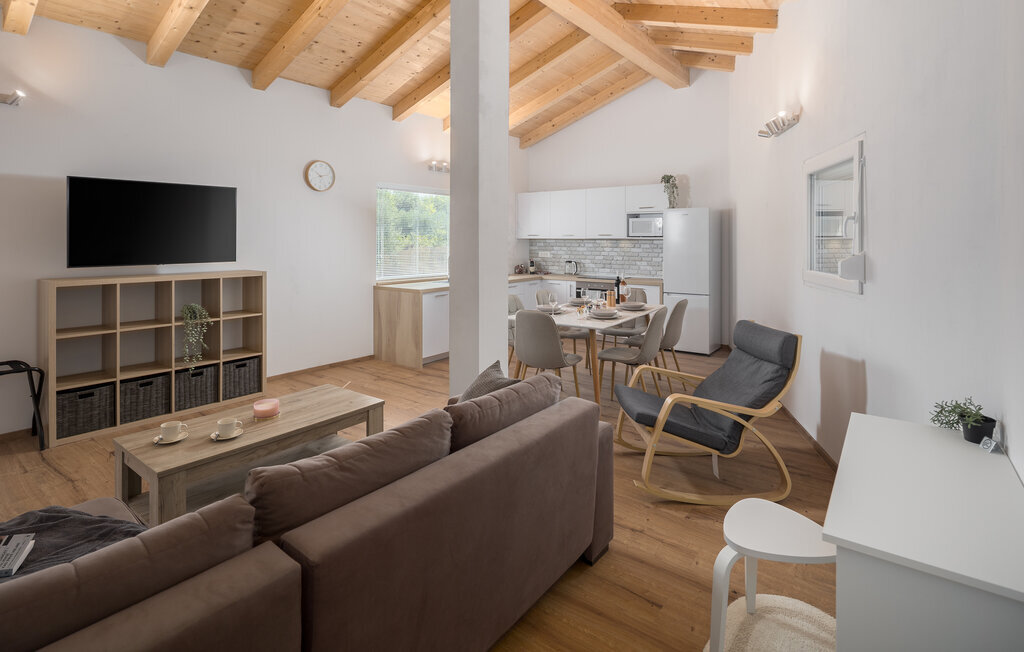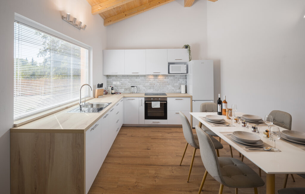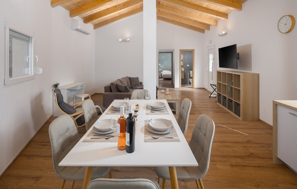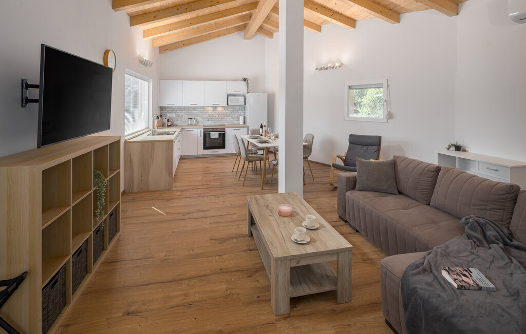 Cette maison vous accueille dans une atmosphère agréable, où convivialité et confort se combinent harmonieusement. Un aspect boisé chaleureux, des couleurs discrètes et une cuisine moderne font que vous vous sentez le bienvenu dès le premier instant. Le canapé confortable vous invite à passer des moments conviviaux ou à regarder la télévision en toute tranquillité. Préparez ensemble de délicieux repas et servez-les avec un bon verre de vin croate.