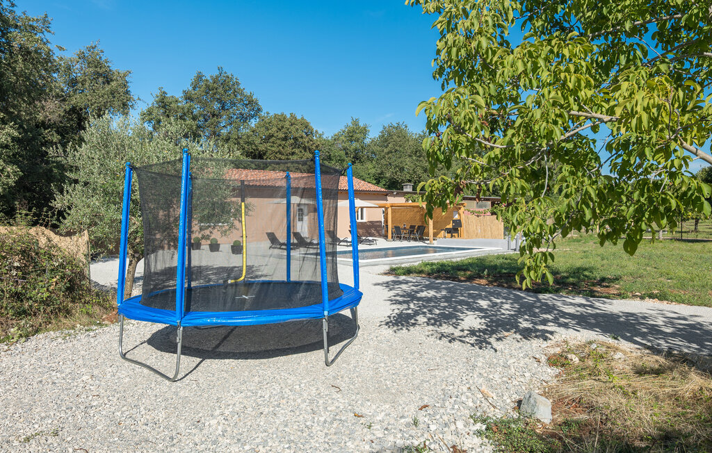 Sous la terrasse couverte, vous profitez de moments de détente à toute heure de la journée, que ce soit pour le petit-déjeuner avec vue sur le paysage paisible ou pour un dîner convivial. Rafraîchissez-vous dans la piscine ou trouvez un coin tranquille pour profiter du soleil. Pendant ce temps, vos enfants jouent dans le jardin ou s'en donnent à cœur joie sur le trampoline.