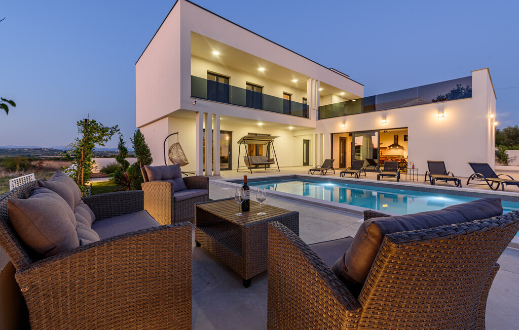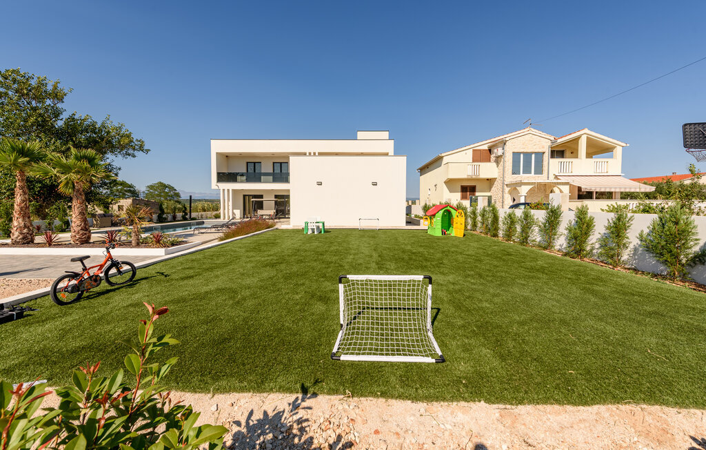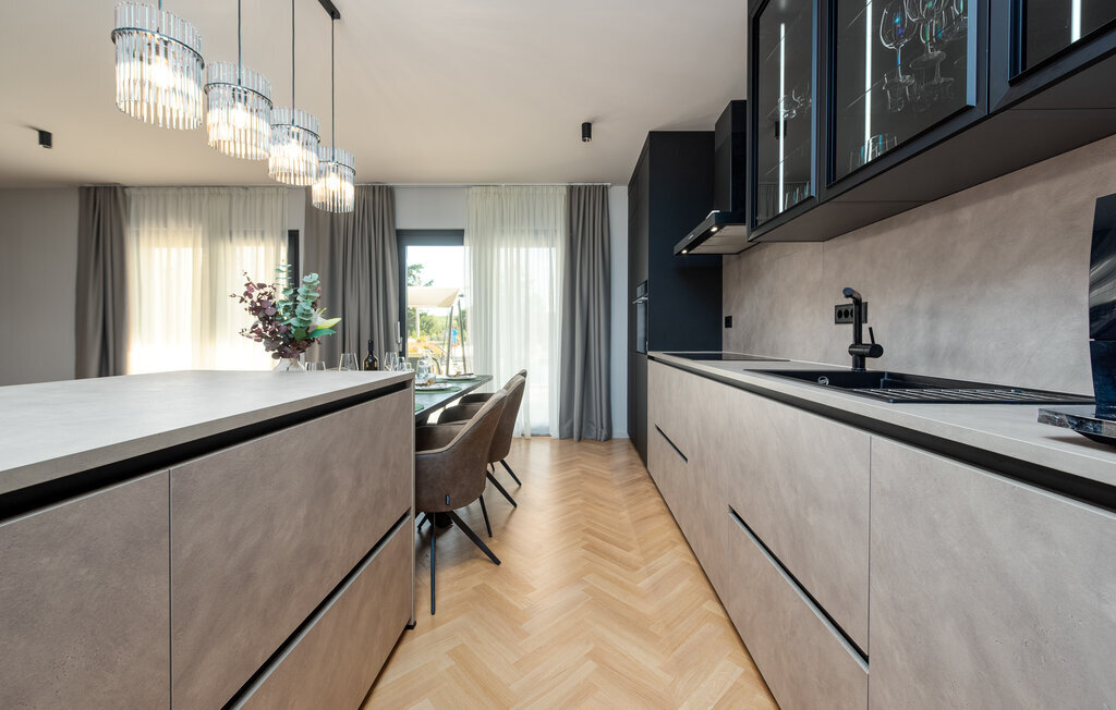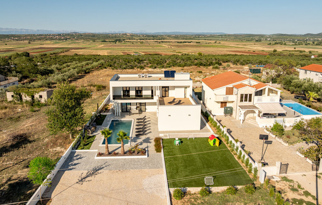 Cette maison moderne vous accueille dans une atmosphère bienfaisante, où le confort et l'élégance se combinent harmonieusement. Des pièces lumineuses, un canapé spacieux et une cuisine pratique vous permettront de vous sentir immédiatement comme chez vous. Préparez ensemble de savoureux repas et servez-les avec un verre de vin croate. Ensuite, le canapé vous invite à passer des heures de détente devant la télévision.