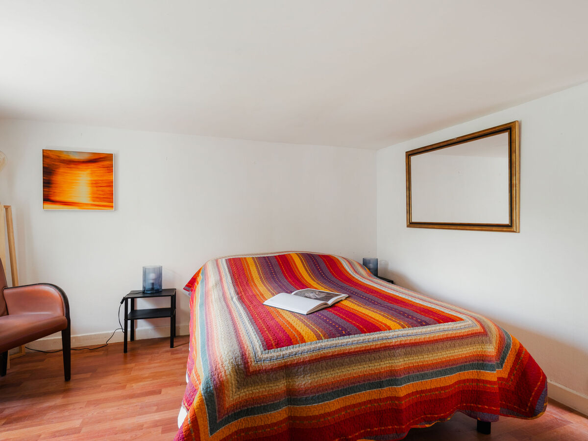 1 chambre avec 1 divan-lit double (1 x 140 cm, longueur 190 cm), TV (écran plat).