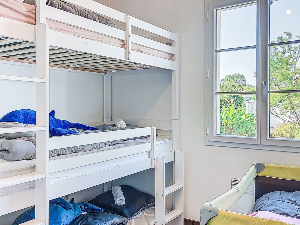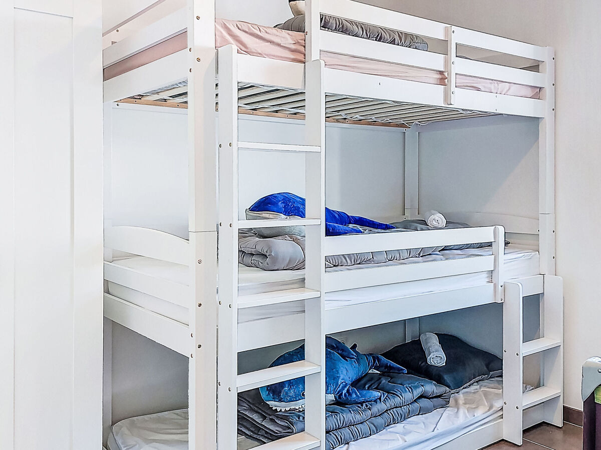 1 chambre avec 2 x 3 lits superposés (90 cm, longueur 190 cm).