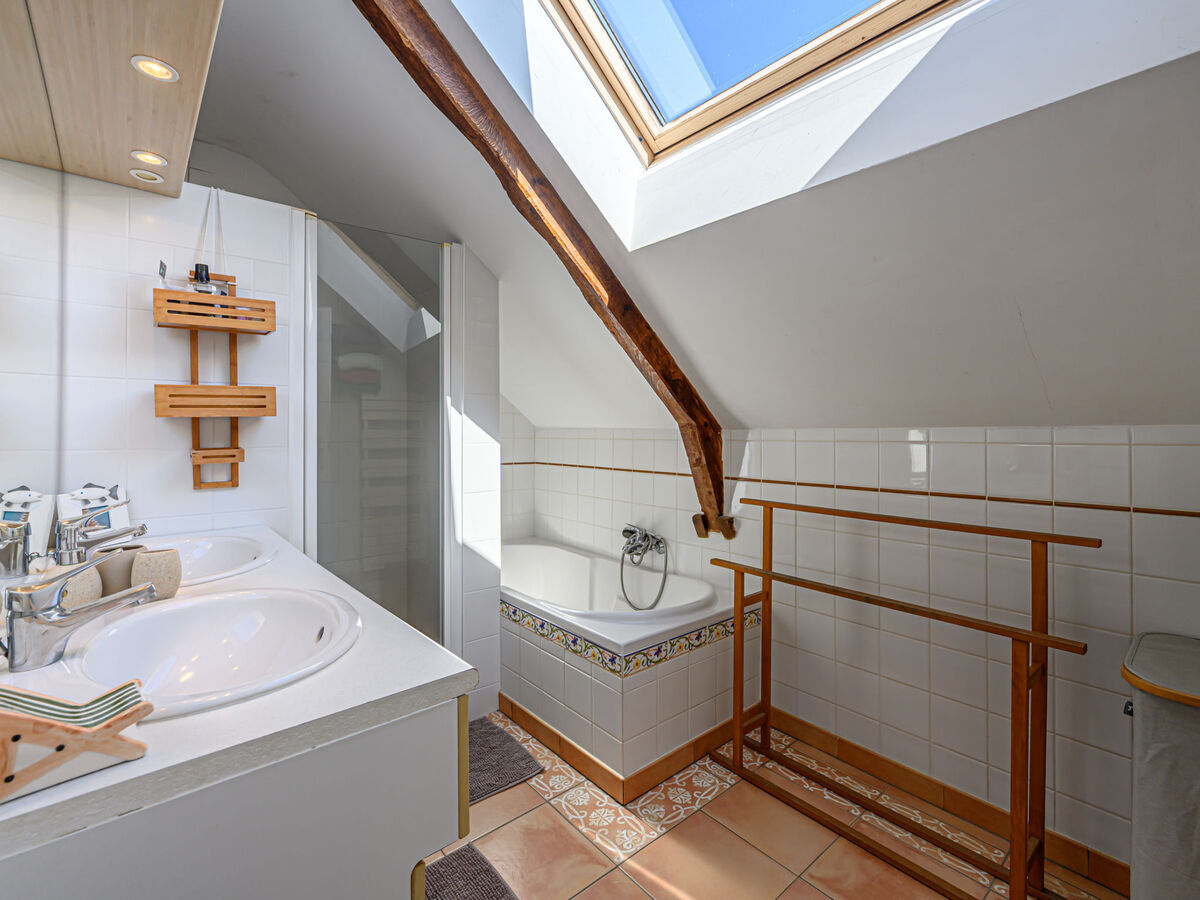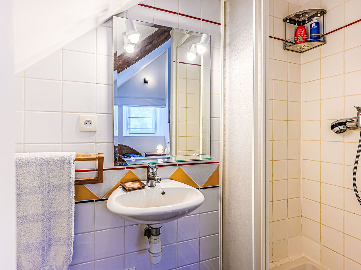 À l'étage supérieur: 1 chambre avec 1 grand-lit (1 x 160 cm, longueur 190 cm), douche.