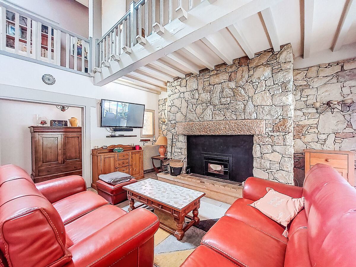 Aménagement confortable et agréable: séjour/salle à manger avec poêle suédois et TV (écran plat).