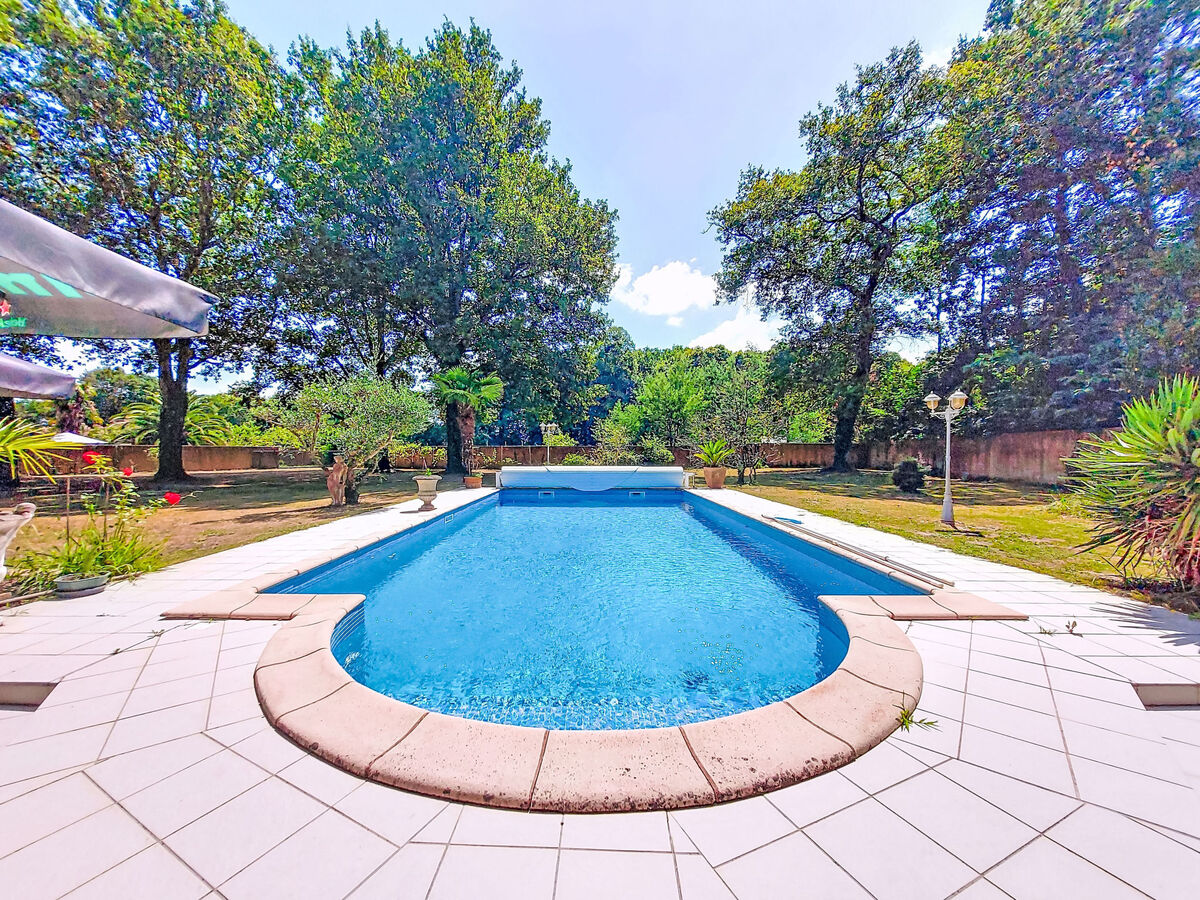 A usage privé: terrain 3'850 m2, piscine (10 x 5 m, profondeur 120 - 180 cm, disponibilité saisonnière: 01.Mai.