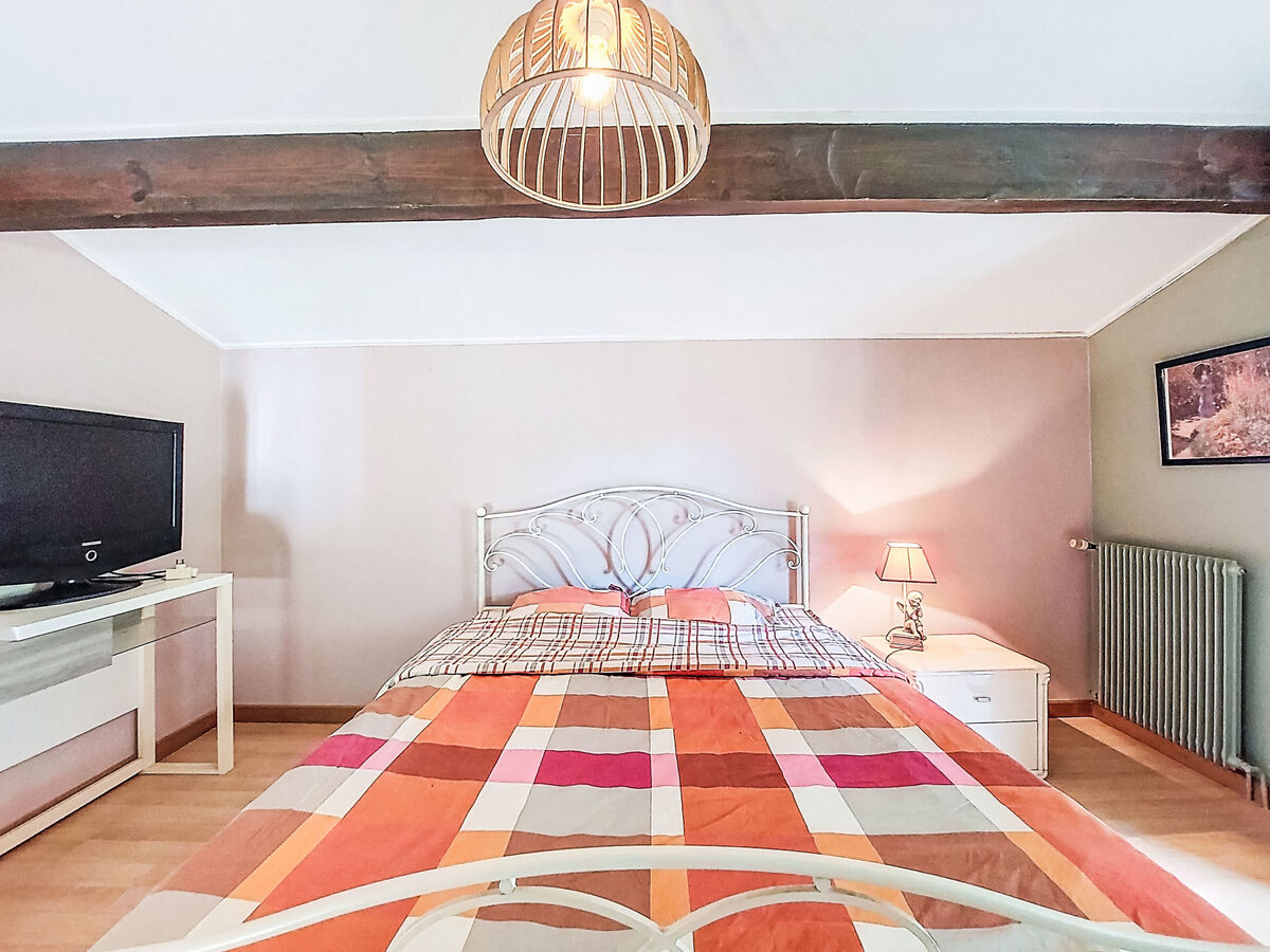 À l'étage supérieur: 1 chambre avec 1 grand-lit (160 cm, longueur 200 cm).