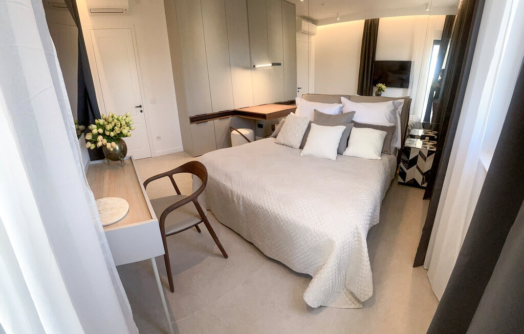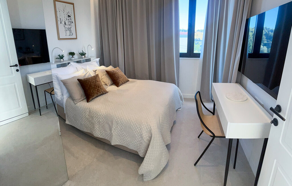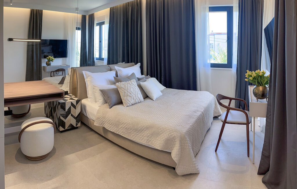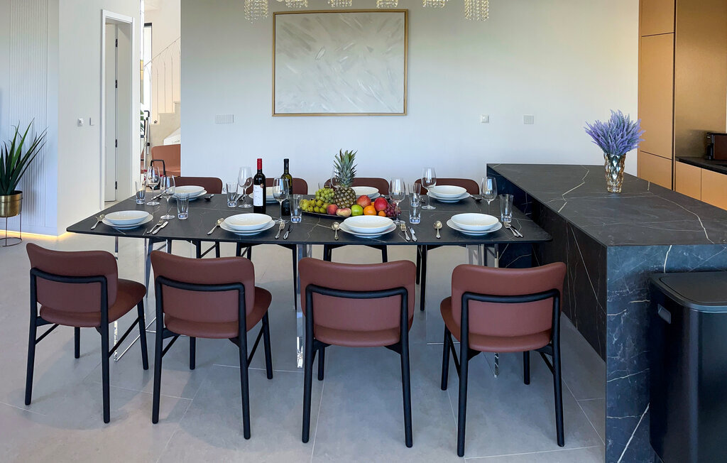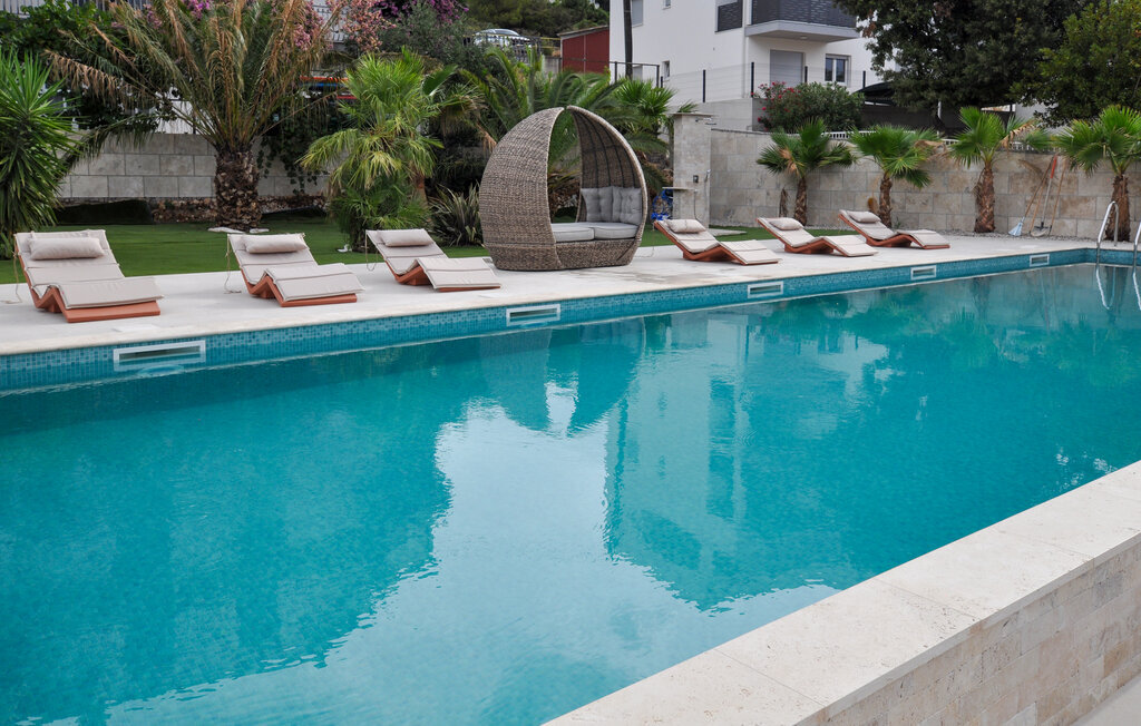 À l'extérieur, une magnifique piscine baignée de soleil vous attend, dans laquelle vous pouvez faire tranquillement des longueurs le matin. Laissez-vous imprégner par l'atmosphère méditerranéenne lors d'un repas de fête sur la terrasse, offrez-vous des moments de bien-être dans la piscine et des siestes reposantes dans le daybed.
