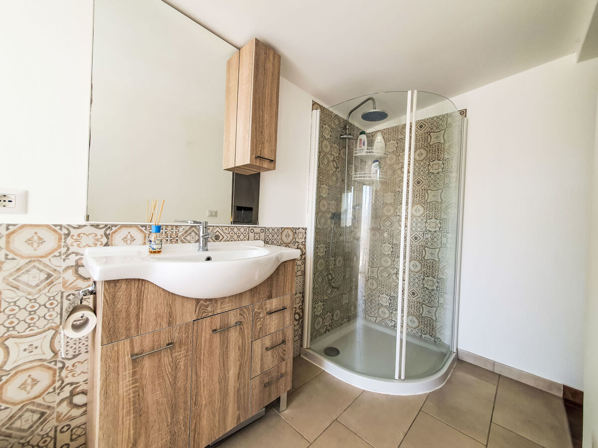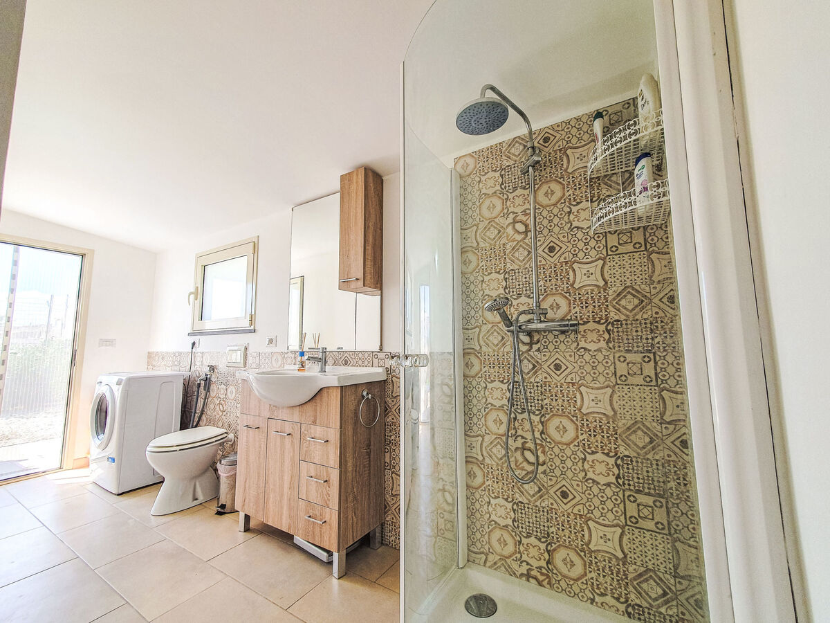 1 chambre double avec douche/WC, air-conditionné et chauffage à air chaud.
