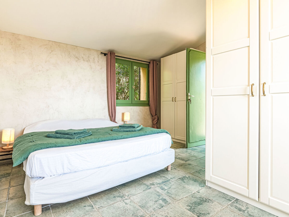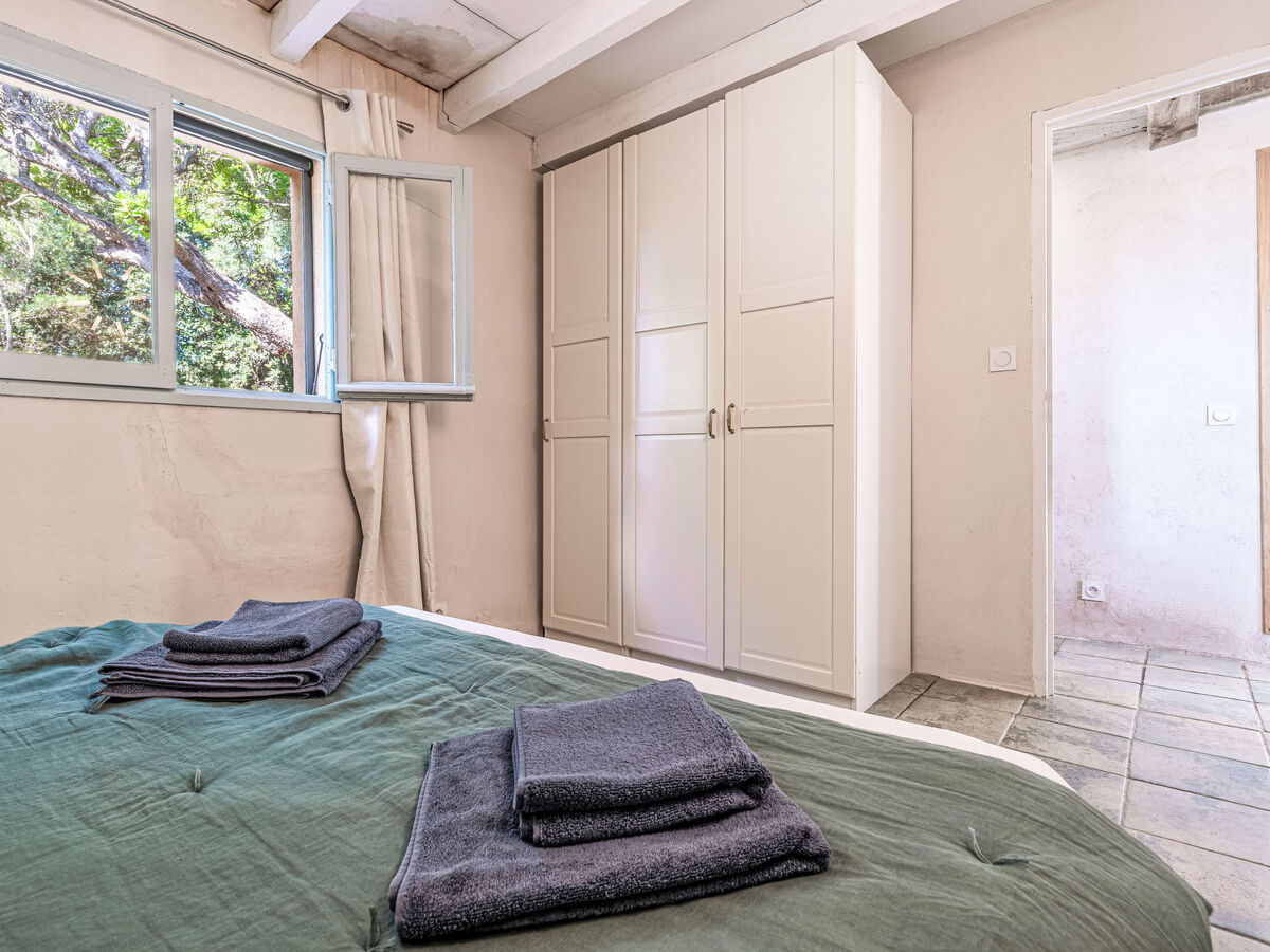 À l'étage supérieur: (escalier extérieur) 1 chambre avec 1 grand-lit (160 cm, longueur 200 cm).