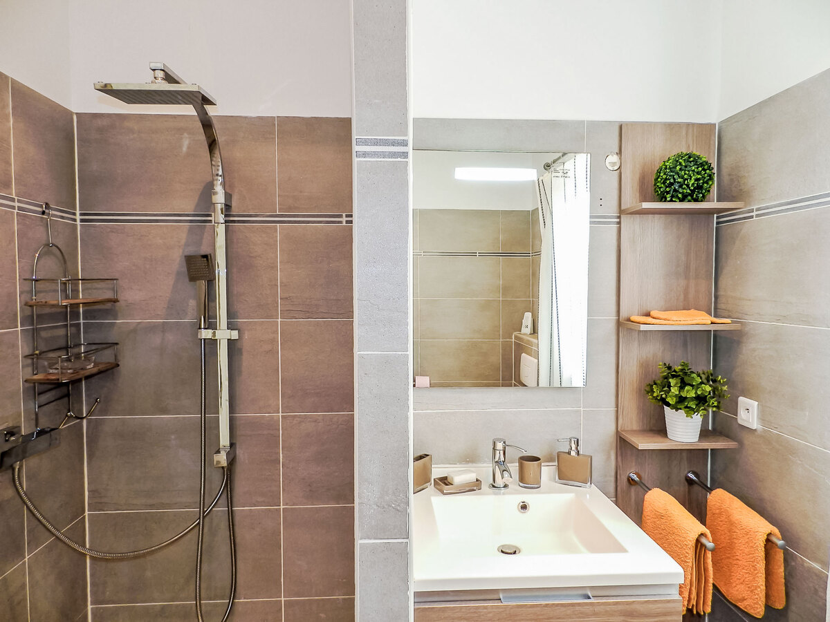 Faire les courses ne prendra que quelques minutes, puisque les magasins d’alimentation sont à 100m seulement. A 200m, vous pouvez trouver les premiers supermarchés. Pour manger à l’extérieur, il convient de visiter les restaurants situés aux alentours (environ 100m). Pour les vacanciers qui ne veulent pas avoir du sable entre les orteils, la plage de galets est à 100m seulement. De plus, un port de plaisance est accessible à 100m de cette location de vacances.