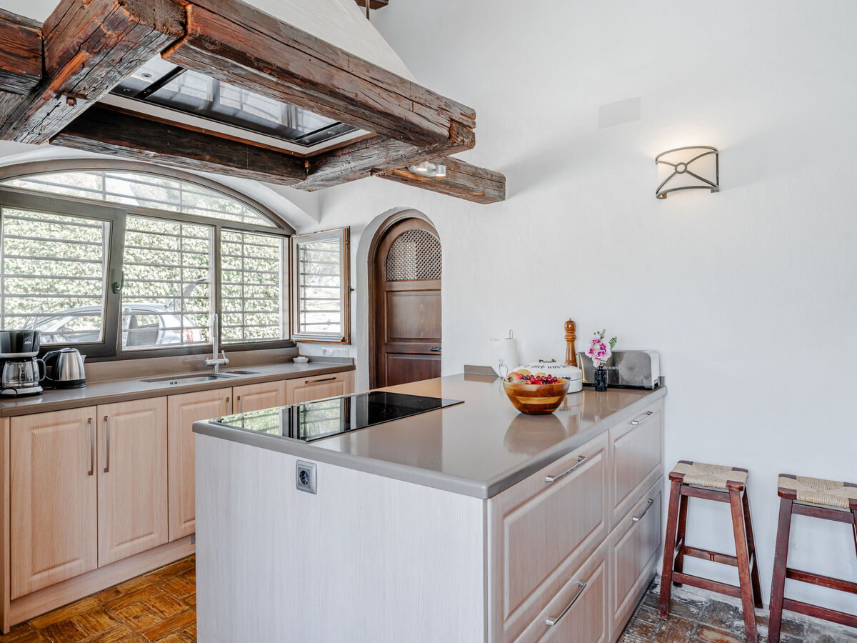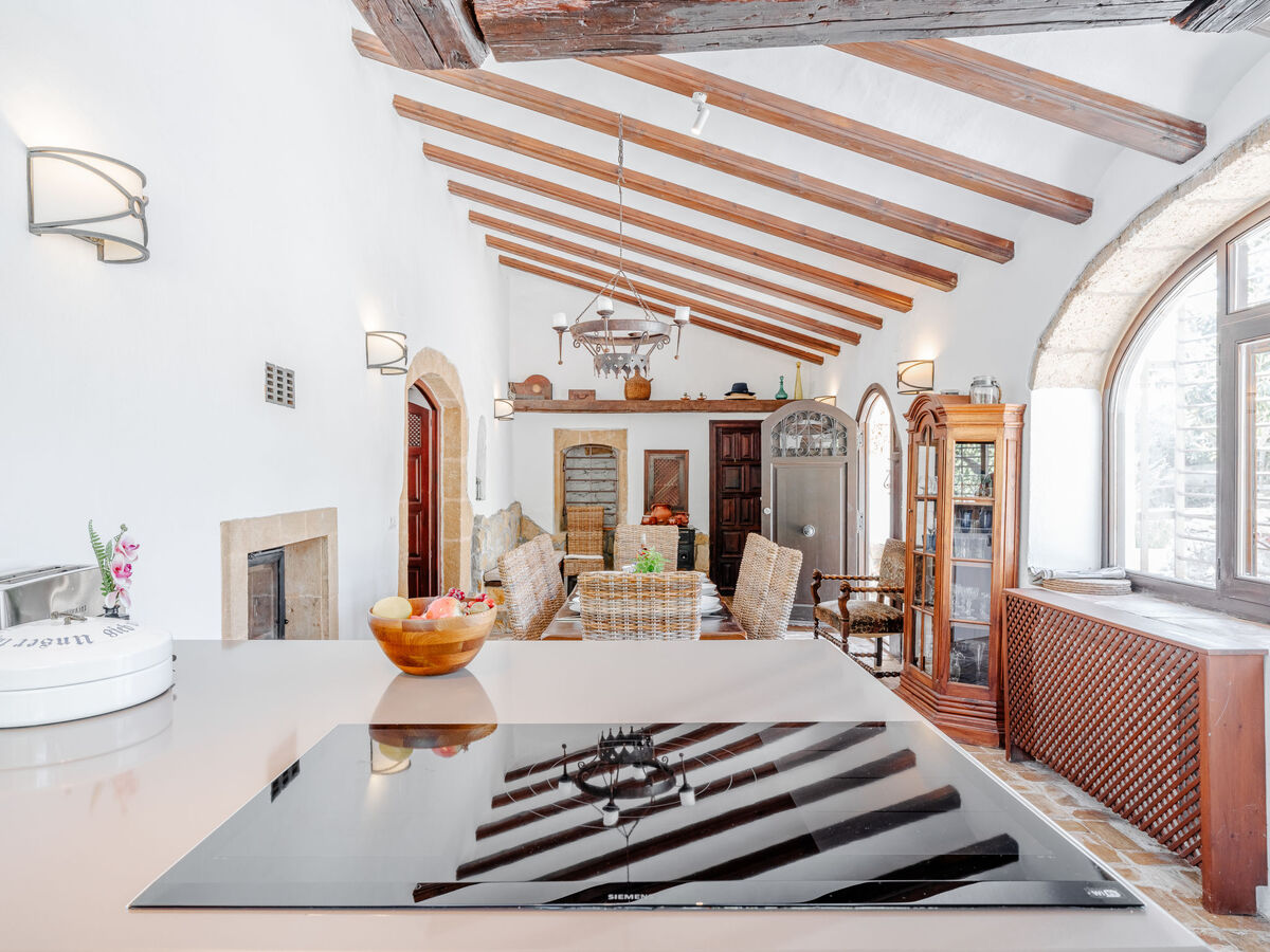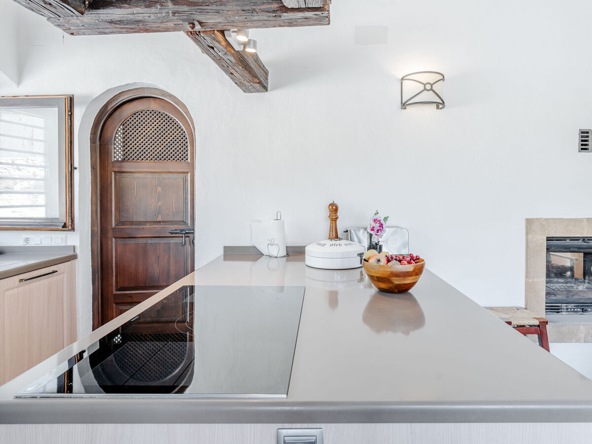 Grande cuisine ouverte (four, lave-vaisselle, 6 plaques à induction, grille-pain, micro-ondes, congélateur, cafetière électrique, ilot de cuisine).