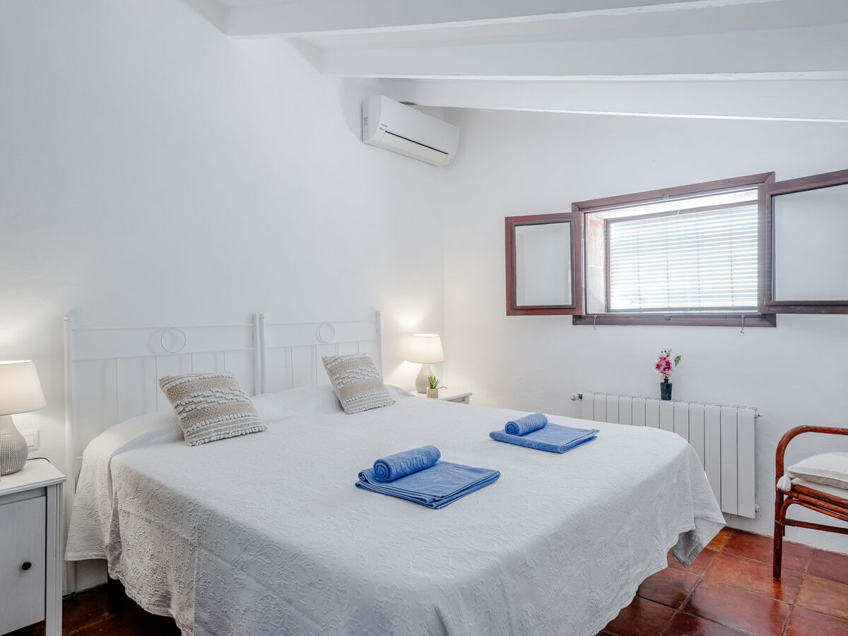 À l'étage supérieur: 1 chambre avec 1 lit double (2 x 90 cm, longueur 190 cm), air-conditionné et chauffage à air chaud.