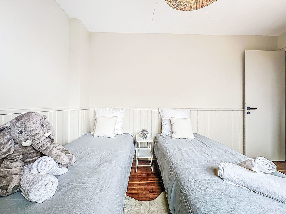 À l'étage supérieur: 3 chambres, chaque chambre avec: 2 lits (80 cm, longueur 200 cm).