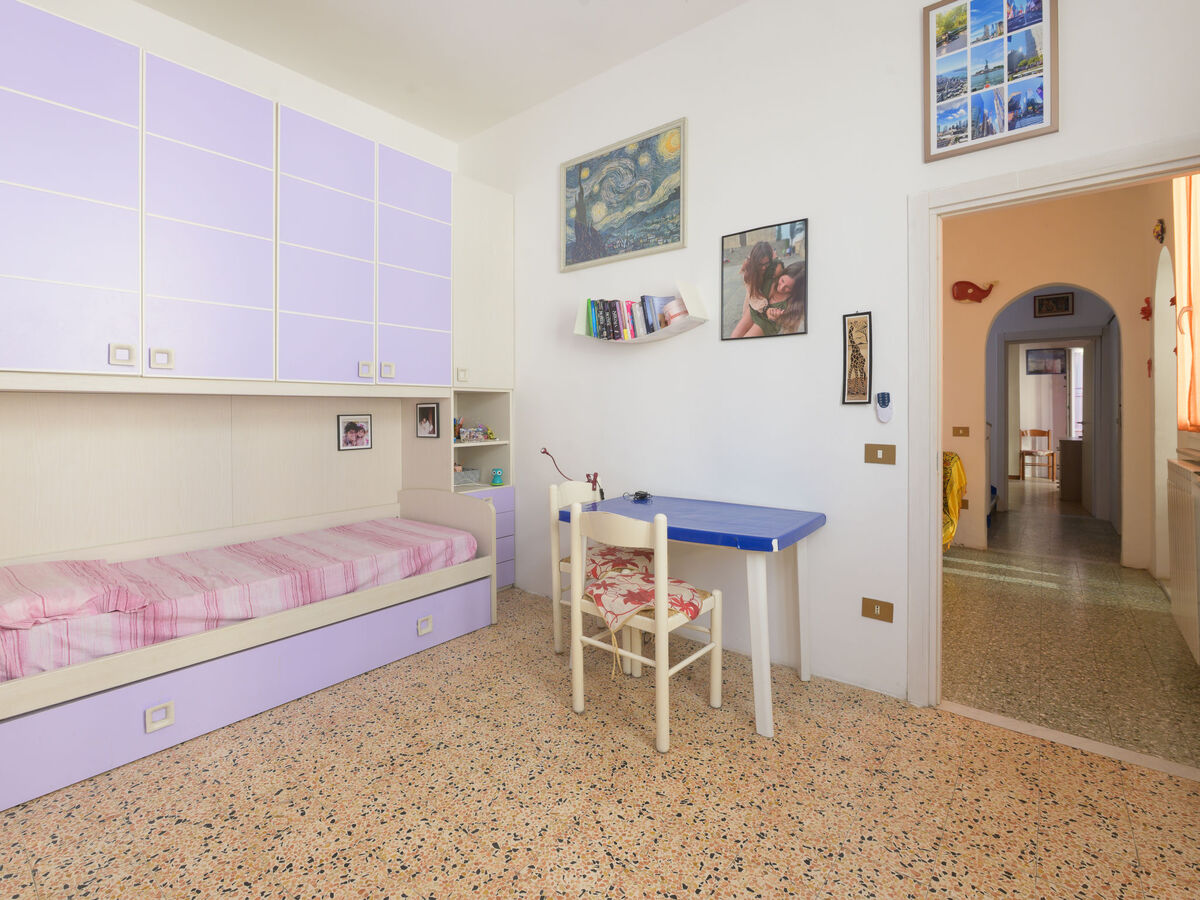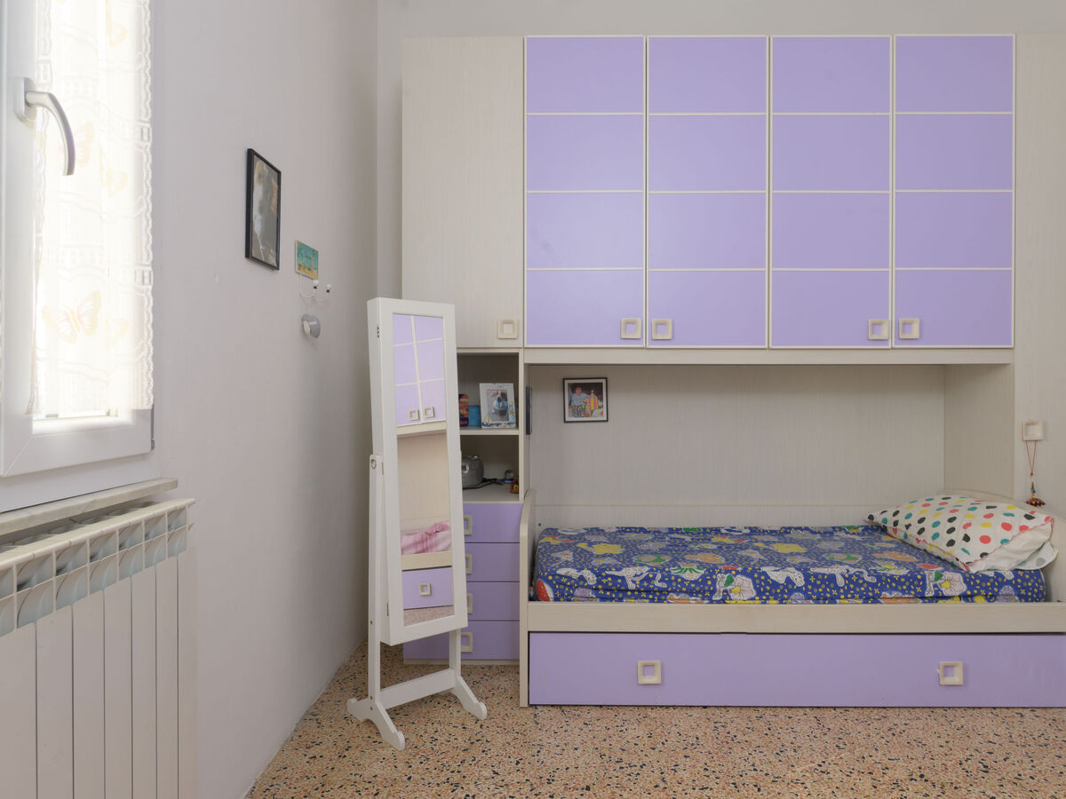 1 chambre avec 2 lits (80 cm), 2 lits gigognes et ventilateur.