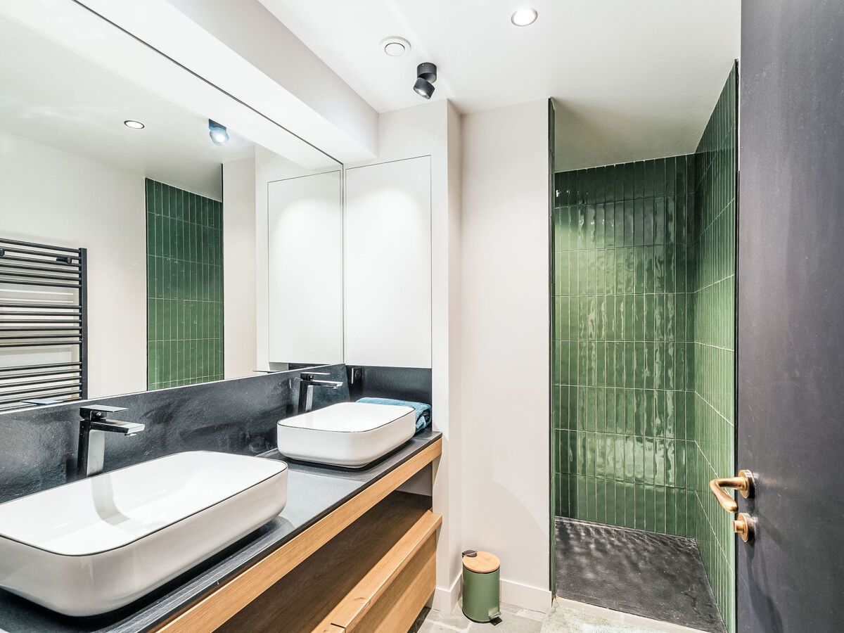 2 chambres, chaque chambre avec: 1 grand-lit (1 x 180 cm, longueur 200 cm), douche/WC et TV (écran plat).